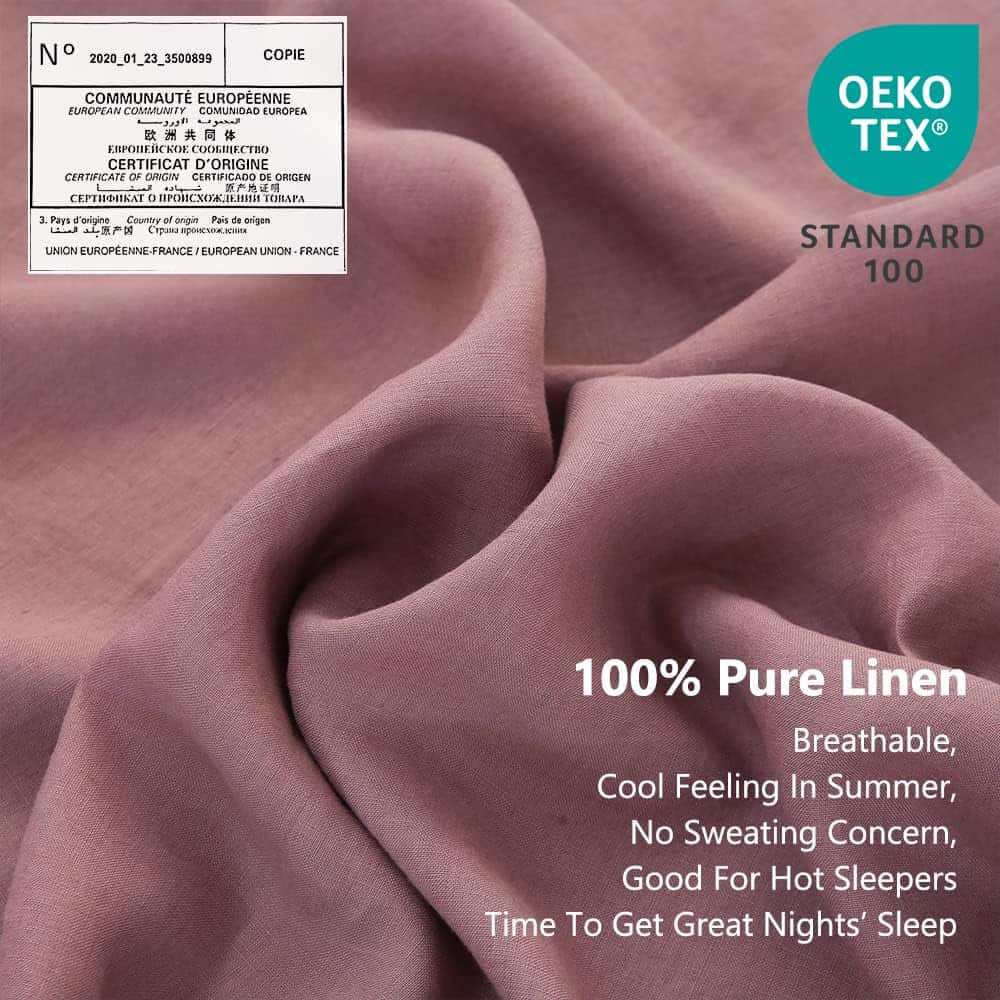 El lino es conocido por su transpirabilidad y su capacidad de mantenerte fresco en verano y cálido en invierno. Este juego de sábanas de lino no solo es suave al tacto, sino que también es duradero y resistente a la decoloración. Además, ha sido certificado por OEKO-TEX como un producto respetuoso con el medio ambiente.