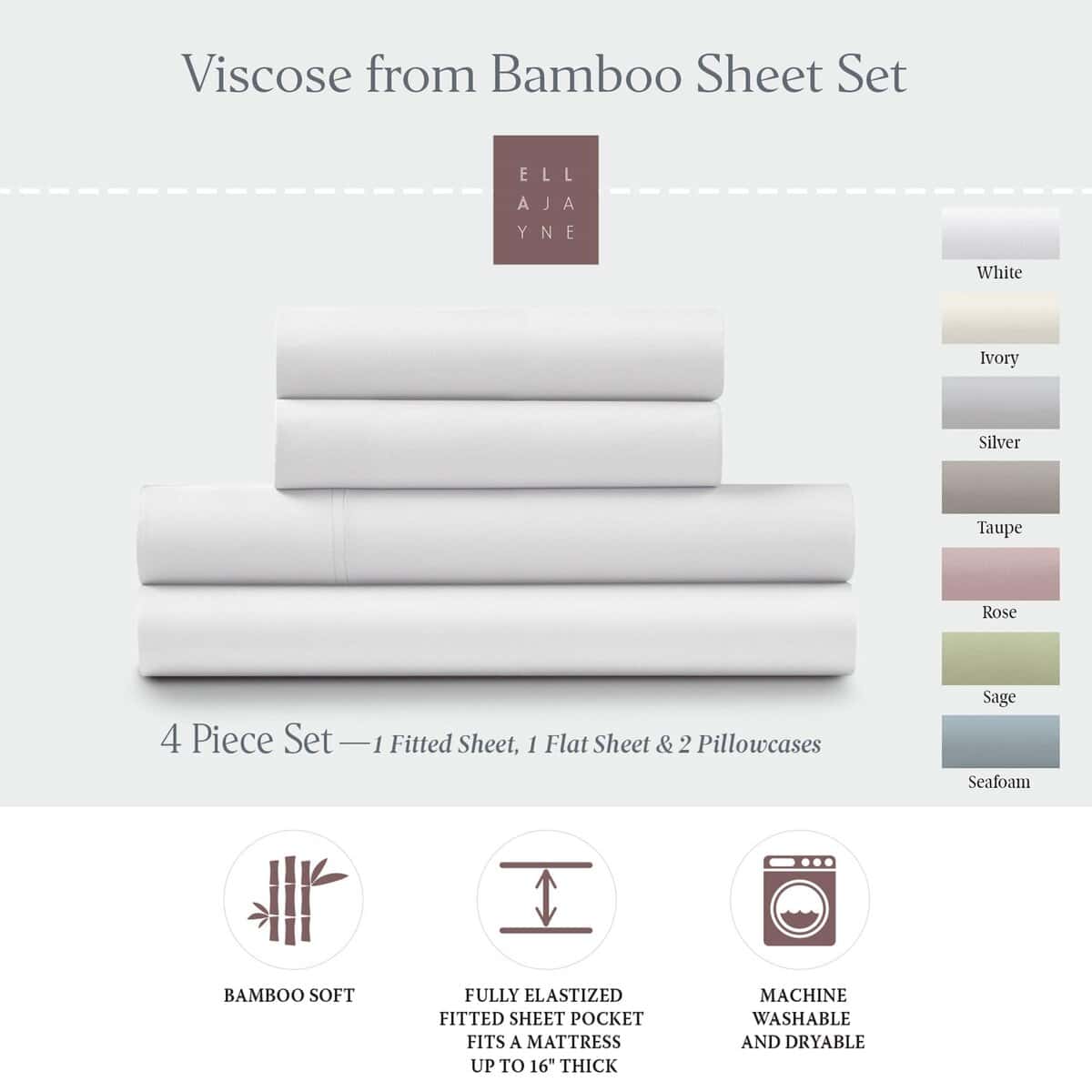 1. EXPERIENCIA DE CONFORT: Confeccionado con viscosa de bambú 100% obtenida de manera sostenible, nuestro juego de sábanas de viscosa de bambú Ella Jayne ofrece una suavidad sedosa como ninguna otra. Hechas exclusivamente de fibras naturales de viscosa de bambú de alta calidad, nuestras sábanas ofrecen una experiencia de sueño de lujo. Combinan la transpirabilidad y los beneficios de enfriamiento con la suavidad inigualable del viscosa de bambú, perfecto para aquellos que buscan una opción de ropa de cama eco-consciente pero lujosa.