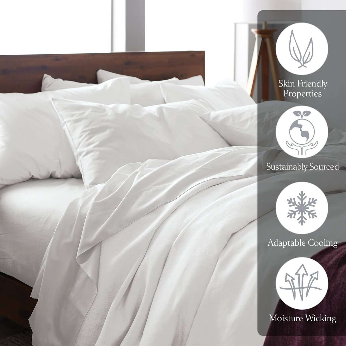 Juego de sábanas de lujo 100% viscosa de -Blanco