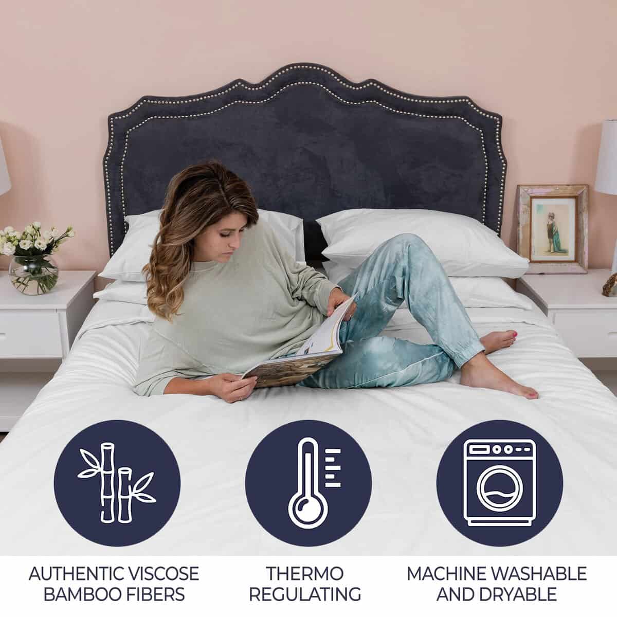 3. ABSORCIÓN DE HUMEDAD: Disfruta de una noche de sueño fresca y seca con nuestras sábanas de viscosa de bambú que absorben la humedad. Diseñadas para una transpirabilidad natural, son ideales para aquellos que duermen calientes o en climas cálidos, asegurando que te mantengas cómodo toda la noche.