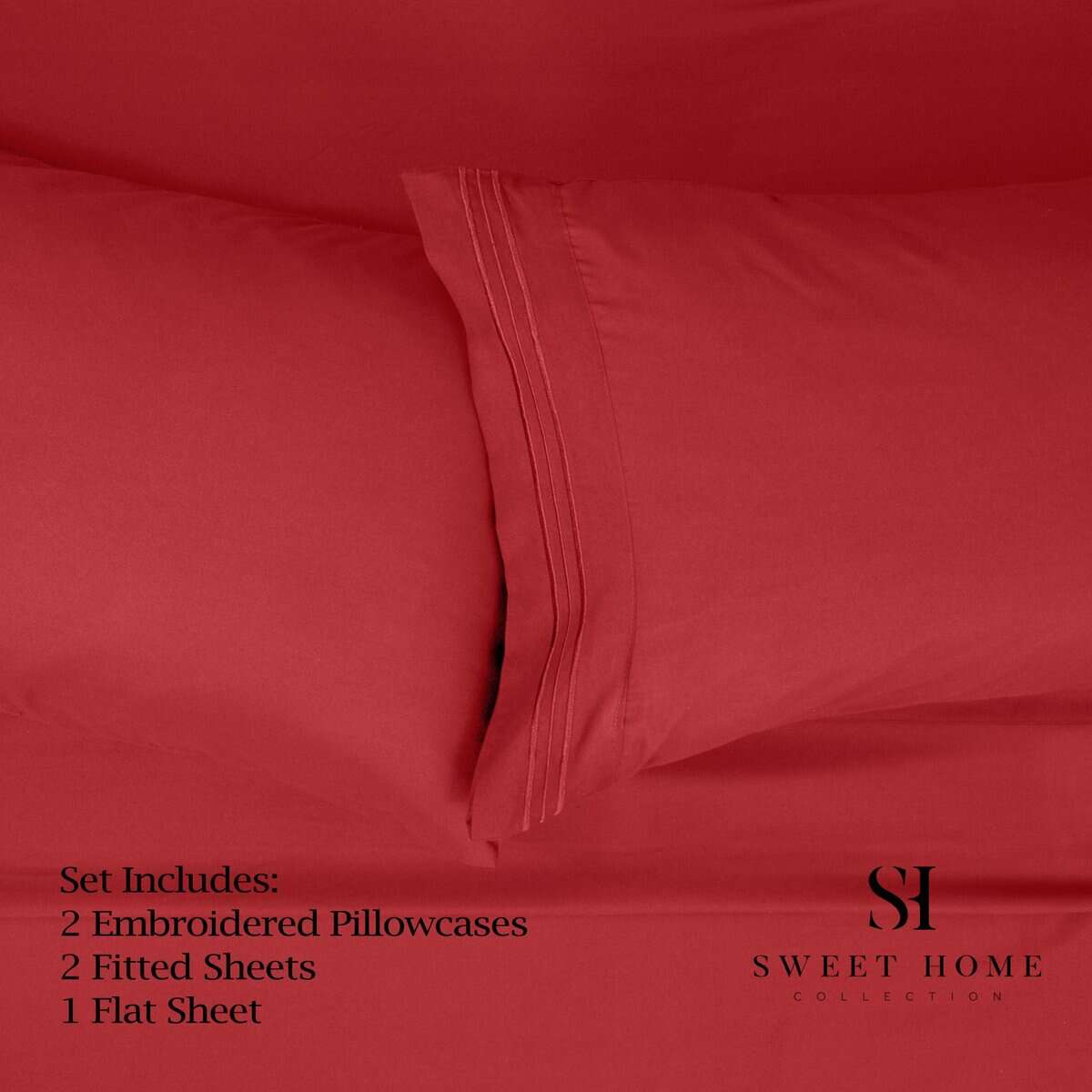 Doble XL: 1 Sábana Plana (66″ x 102″), 1 Sábana Ajustada (39″ x 80″), 1 Funda de Almohada (20″ x 30″)