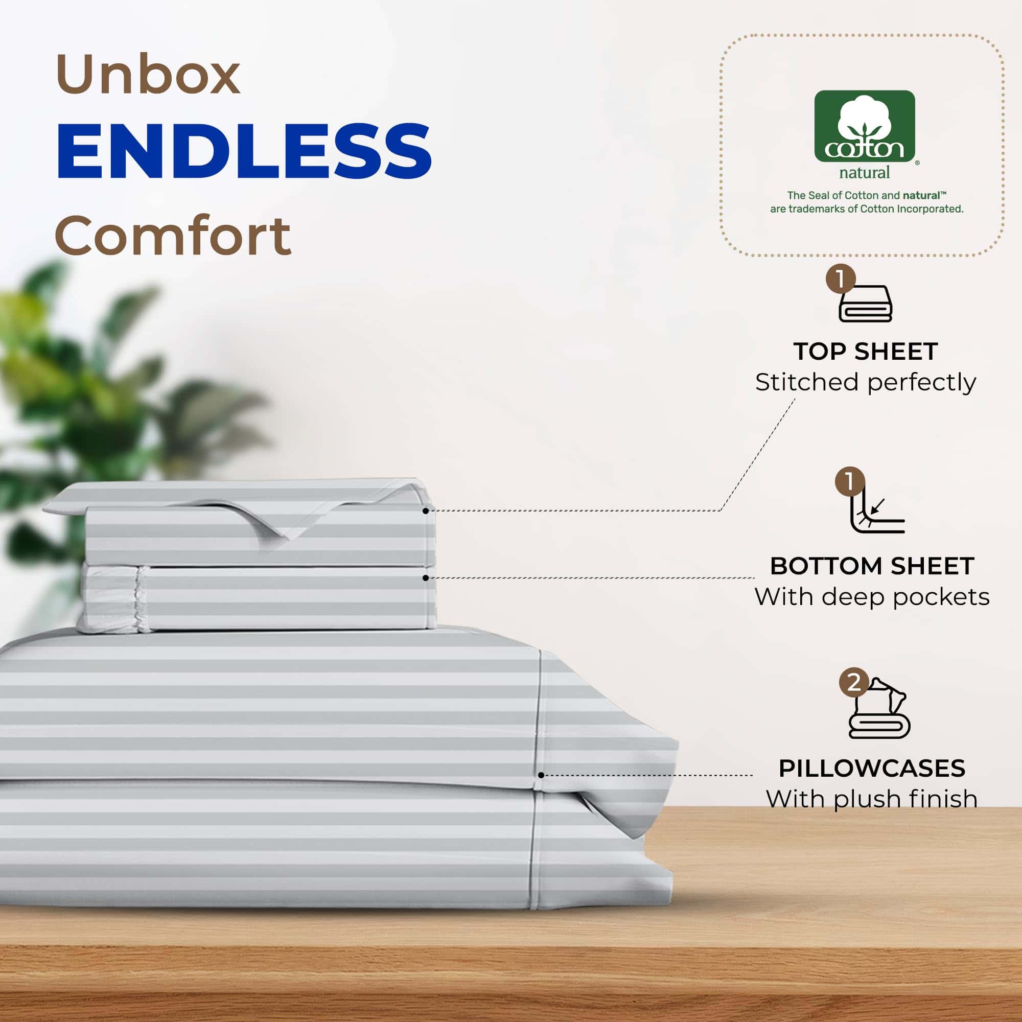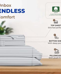 Juego de sábanas de lujo a rayas Full en algodón egipcio de
