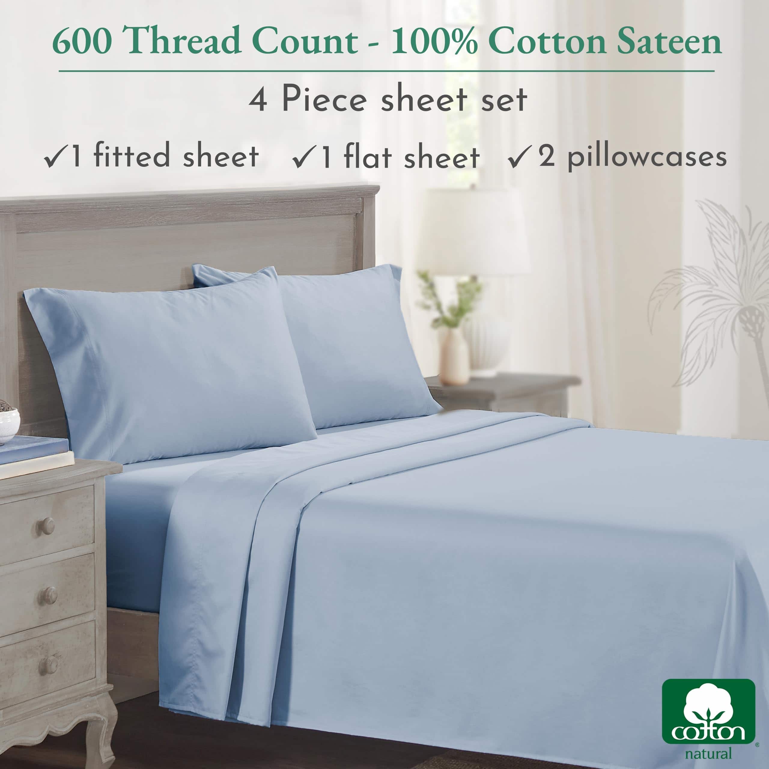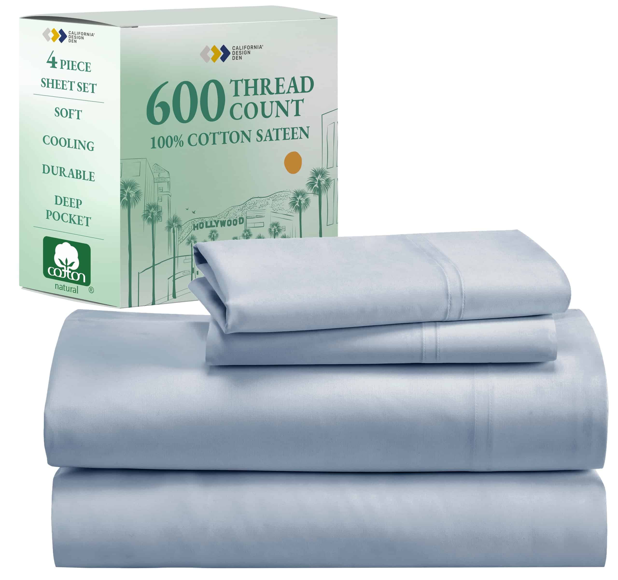 Disfruta de la experiencia de lujo en tu dormitorio con el juego de sábanas de algodón California Design Den tamaño King. Con una suavidad incomparable gracias a sus 600 hilos de algodón certificado sateen, estas sábanas azules mantendrán frescura y comodidad en todas las estaciones. El diseño de ajuste perfecto incluye una sábana plana, una sábana ajustable y dos fundas de almohada que se adaptan a almohadas tamaño King. Lavables a máquina y secables a temperatura regular, estas sábanas mantendrán su calidad a lo largo de los años sin apelmazarse, decolorarse ni encoger. El algodón puro es suave en la piel, fresco y transpirable, ayudando a regular la temperatura corporal para un sueño reparador incluso en las noches de verano. Certificadas en Oekotex Standard 100, estas sábanas han sido probadas sin sustancias dañinas para proteger tu salud. Comprometidos con la sostenibilidad, California Design Den ha donado miles de piezas de ropa de cama a obras de caridad en los Estados Unidos y produce sus sábanas en una fábrica familiar en India. Compra con confianza gracias a nuestra política de devolución de 30 días, incluso si ya has lavado o utilizado nuestro producto.