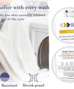1. Experiencia de lujo de algodón – Disfruta de la suavidad de nuestras sábanas de algodón 100% sateen de 600 hilos certificados, proporcionando una experiencia moderna y elegante de hotel cinco estrellas en tu propia habitación. Nuestro juego de sábanas blancas de algodón bordado gris te mantiene fresco y cómodo en todas las estaciones. 2. Diseño perfecto – Este juego de sábanas de algodón Queen de bolsillo profundo de 4 piezas incluye 1 sábana plana (90″ de ancho x 102″ de largo), 1 sábana ajustable (60″ de ancho x 80″ de largo) y 2 fundas de almohada (21″ de ancho x 32″ de largo) que se ajustan a almohadas estándar y Queen. La sábana ajustable inferior tiene un elástico duradero alrededor para adaptarse a colchones de 8 a 16 pulgadas de profundidad, y un indicador lateral para hacer la cama fácilmente. 3. Cuidado fácil y duradero – Lava y seca nuestras sábanas a configuraciones regulares, y mantendrán su calidad durante años. Nuestro juego de sábanas de algodón Queen es duradero y no se apelmaza, decolora ni encoge. 4. Beneficios para la salud y calidad – El algodón puro es suave con tu piel. Nuestro juego de sábanas de algodón es fresco y transpirable, ayudando a regular la temperatura corporal para una noche de sueño reparador incluso en verano. Nuestras sábanas están certificadas Oekotex Standard 100, probadas para sustancias dañinas para proteger tu salud. 5. Comprometidos con la sostenibilidad – En 2022 y 2023, donamos más de 22,000 piezas de ropa de cama a organizaciones benéficas locales en EE. UU. No utilizamos plástico en nuestro embalaje, y nuestras sábanas se producen en nuestra fábrica de propiedad y operada por nuestra familia en la India. Compra con confianza con nuestra política de devolución de 30 días, incluso si has lavado o usado nuestro producto.