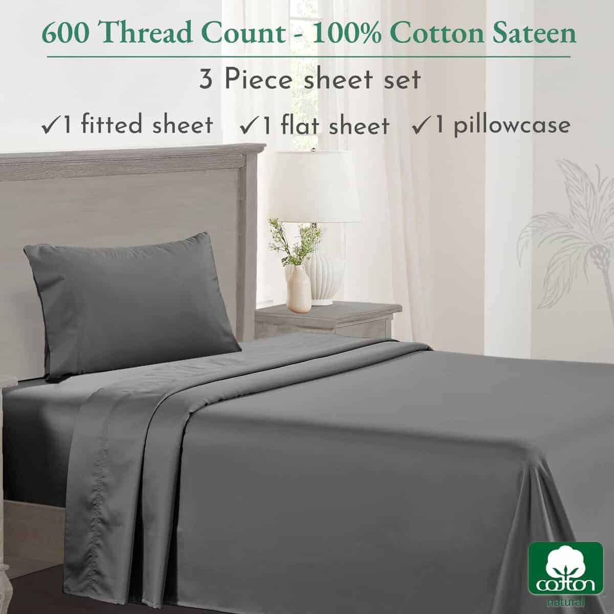 Juego de sábanas de lujo California Design Den -Gris