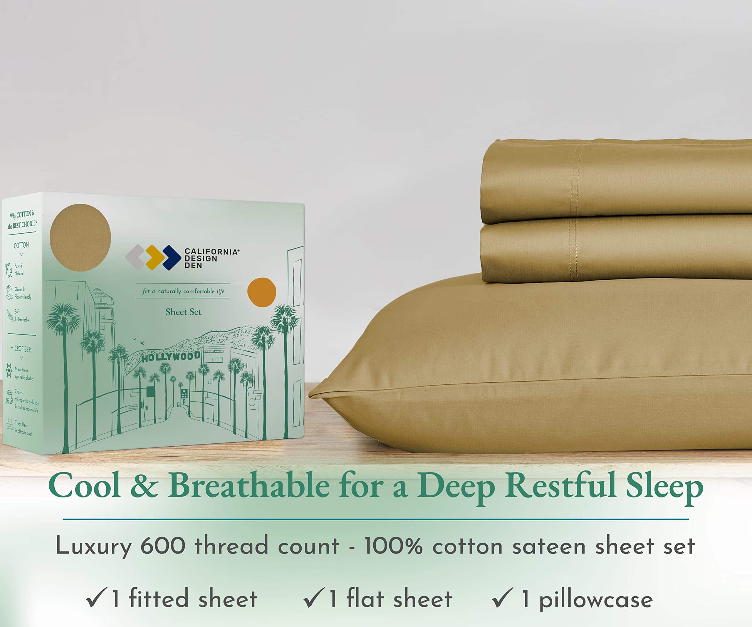 1. Experiencia de algodón de lujo: Disfruta de la suavidad de nuestras sábanas de algodón certificadas de 600 hilos de satén al 100% en tu colchón, brindando una experiencia de hotel moderna de cinco estrellas en tu propio dormitorio. Nuestro juego de sábanas de lujo twin es fresco y transpirable, cómodo en todas las estaciones. 2. Diseño perfecto: Este juego de sábanas de tamaño twin incluye 1 sábana plana (66″ W x 100″ L), 1 sábana ajustable (39″ W x 75″ L) y 1 funda de almohada (21″ W x 32″ L) que se ajusta tanto a almohadas estándar como a almohadas queen. La sábana ajustable tiene un indicador de lado de la cabeza / lado del pie para facilitar la elaboración de la cama y elásticos duraderos para adaptarse a colchones de 8 a 15 pulgadas de profundidad. 3. Cuidado fácil y duradero: Lava y seca nuestras sábanas a configuraciones regulares, y saldrán luciendo genial durante años. Nuestras duraderas sábanas de cama de tamaño twin no se apelotonarán, desvanecerán ni encogerán, asegurando una calidad duradera. Perfecto para dormitorios universitarios o habitaciones. 4. Beneficios para la salud y certificado: El algodón puro es suave en tu piel, y nuestro juego de sábanas de lujo de hotel es fresco y transpirable, ayudando a regular la temperatura corporal para una noche de sueño más reparadora. Nuestras sábanas están certificadas Oekotex Standard 100, probadas para sustancias dañinas para proteger tu salud. 5. Compromiso con la sostenibilidad: En 2022 y 2023, donamos más de 22,000 piezas de ropa de cama a organizaciones benéficas locales en los EE. UU. No usamos plástico en nuestro embalaje y nuestras sábanas se producen en nuestra fábrica operada y propiedad de nuestra familia en la India.