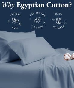 Obtenga el premio de Buena Casa de lujo ganador Con el sello de autenticidad, nuestras sábanas azules Full están fabricadas con el mejor algodón de fibra larga para obtener una tela lisa y duradera que soporta las arrugas y se mantiene prístina con el tiempo. Estas sábanas livianas son amadas por su tacto suave y durabilidad. Mantienen su suavidad lujosa sin apelmazamiento o encogimiento, incluso después de lavados frecuentes a máquina. Experimente un soporte excepcional de nuestro dedicado equipo de atención al cliente con cada compra.