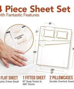 Nuestras sábanas de rayas a rayas tienen el mejor ajuste, gracias al elástico ancho y a los bolsillos extra profundos que se adaptan a cualquier colchón ajustable. La sábana superior (108′ W x 102′ L), la sábana inferior (72′ W x 84′ L + 16′ de bolsillo profundo) y dos fundas de almohada tamaño King (21′ W x 40′ L). Hemos ido un paso más allá y mercerizado nuestras sábanas de damasco de algodón de alta calidad y premium. Esto significa que nuestras sábanas tienen un brillo e lustre aumentados, mejor calidad de tinte y durabilidad mejorada que otras sábanas de damasco de algodón en el mercado. Nuestras sábanas de rayas de damasco son totalmente lavables a máquina y resistentes al apelmazamiento, encogimiento y decoloración. Estamos certificados como STANDARD 100 por OEKO-TEX por no tener productos químicos agresivos en nuestras sábanas de damasco a rayas que puedan afectar la piel sensible de adultos y niños. Hechas de 100% algodón de origen natural, somos una mejor alternativa al microfibra. La sensación de nuestras lujosas sábanas de cama de damasco es similar a la de una sábana de algodón egipcio y por qué exactamente también te encantarán.
