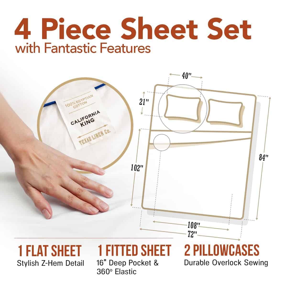 Juego de sábanas de lujo de algodón egipcio tamaño