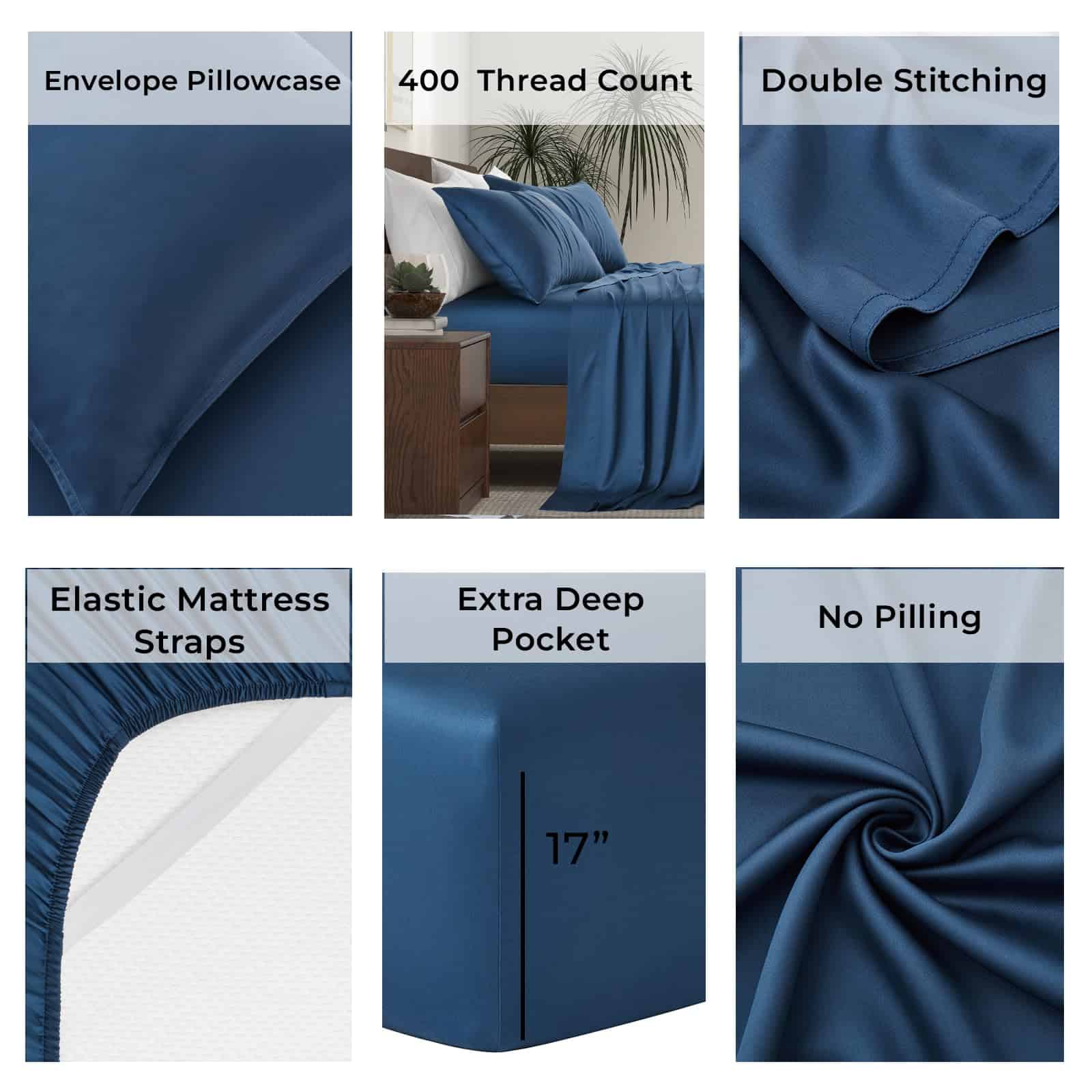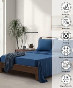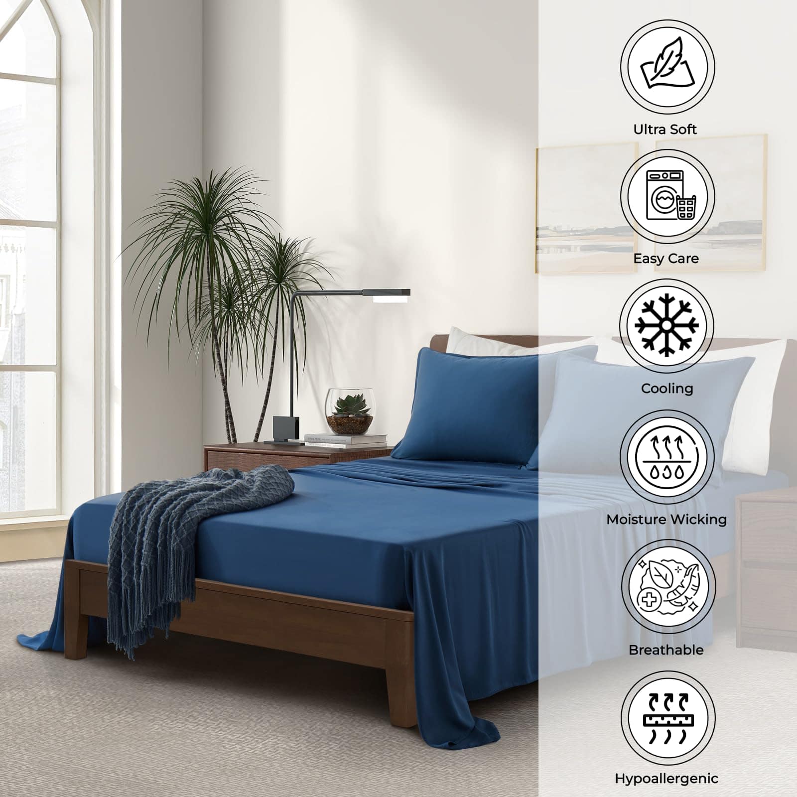 Juego de sábanas de lujo de bambú | Tamaño -Azul medianoche