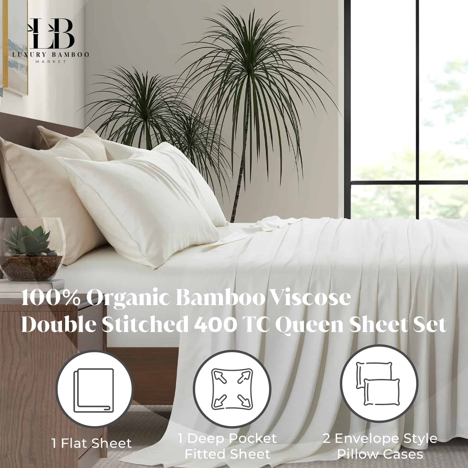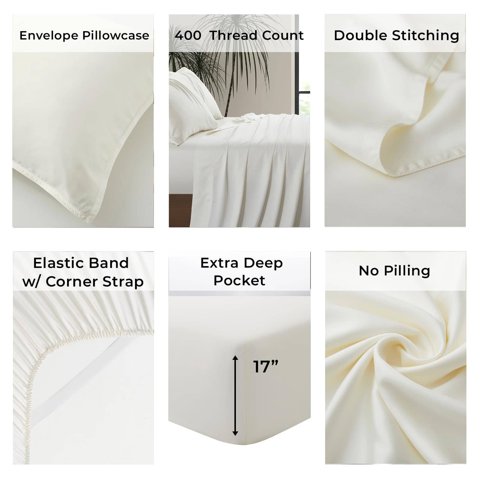 Juego de sábanas de lujo de bambú | Tamaño -Opulento marfil