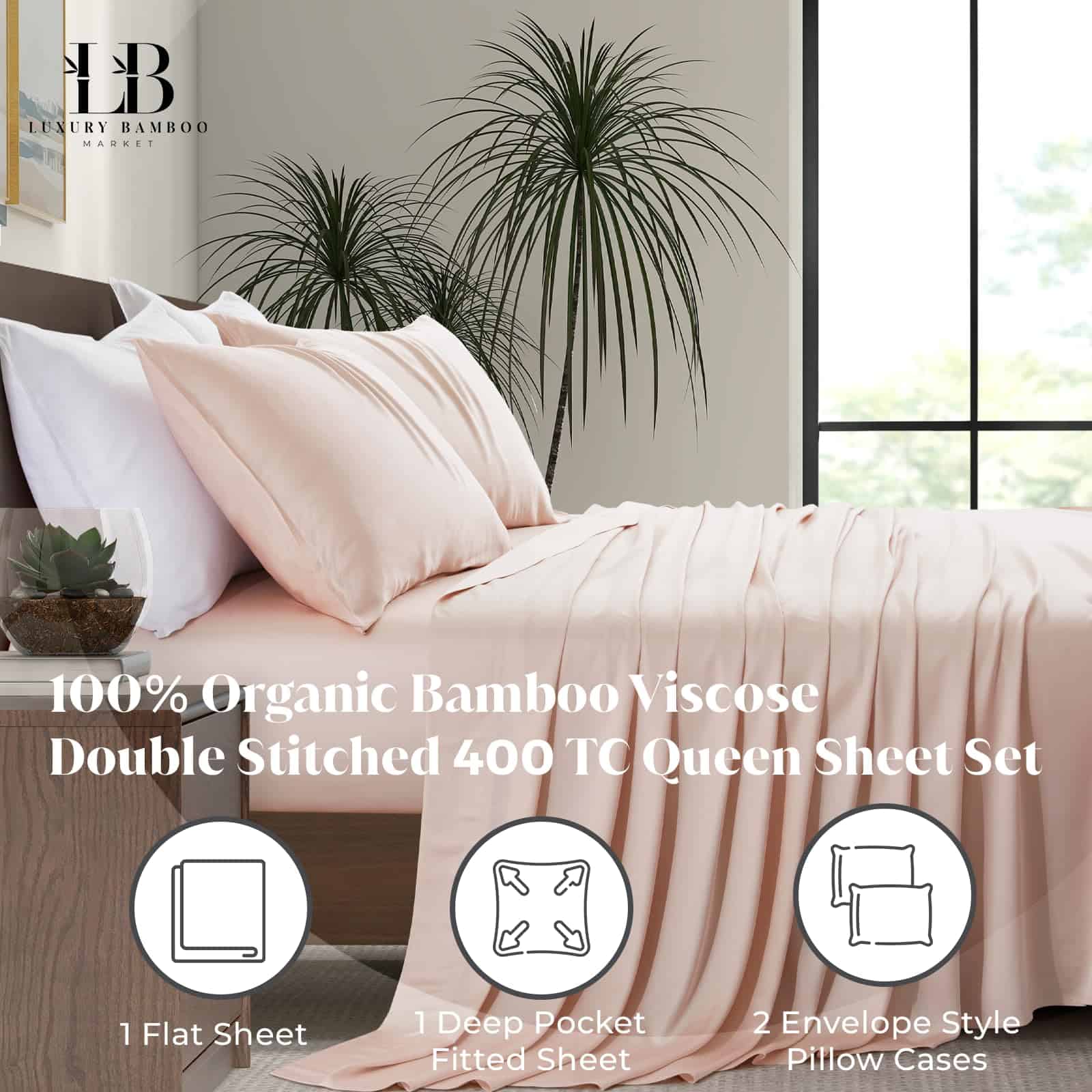 Juego de sábanas de lujo de bambú | Tamaño -Vintage Pink