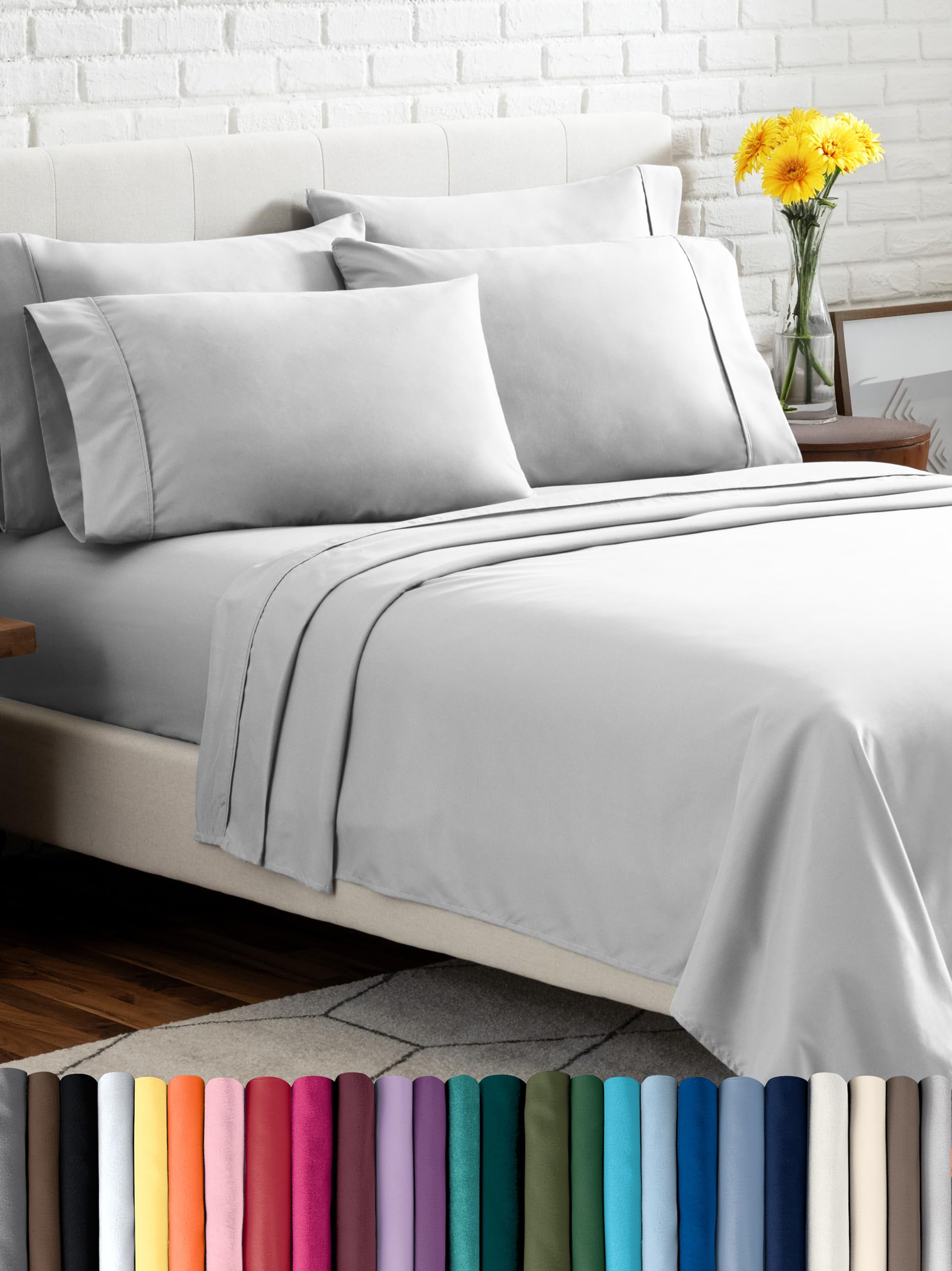1. JUEGO DE SÁBANAS ULTRA SUAVE: Nuestra microfibra de la más alta calidad es hidrocepillada con chorros de agua ultrafinos. El resultado es más suave y más resistente que los hilos de microfibra doble cepillados estándar, por lo que no se rasgará ni romperá. Completa tu look de ropa de cama con productos de alta calidad adicionales de Bare Home.