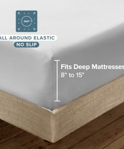 3. AJUSTE FÁCIL 360 GRADOS ELÁSTICO: Nuestras sábanas ajustables de bolsillo profundo caben en colchones de hasta 15 pulgadas de profundidad, que es un tamaño universal para la mayoría de los colchones. El elástico en todos los lados proporciona un ajuste firme alrededor de tu colchón para mantener todo en su lugar para los durmientes inquietos. Los bolsillos profundos seguirán ajustados en colchones de menos de 15 pulgadas.