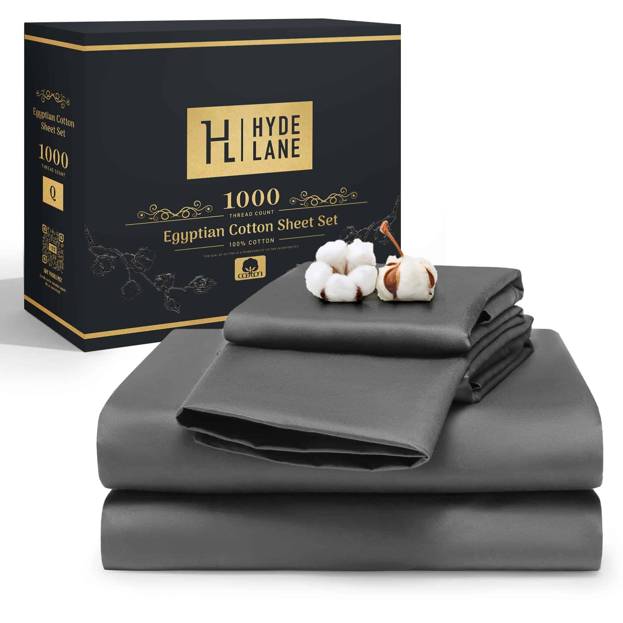 1. 100% algodón egipcio. Hyde Lane se enfoca en ropa de cama de alta gama y la comodidad del sueño. Hecho de 100% algodón egipcio, duradero, que absorbe la humedad y transpirable, proporcionando una sensación suave y no irritante a la piel. Seleccionamos algodón egipcio, uno de los algodones más finos y raros del mundo, para nuestras sábanas. Seleccionado a mano para garantizar fibras extra largas y alta calidad. Certificado estándar OEKO-TEX 100 para su garantía de salud.