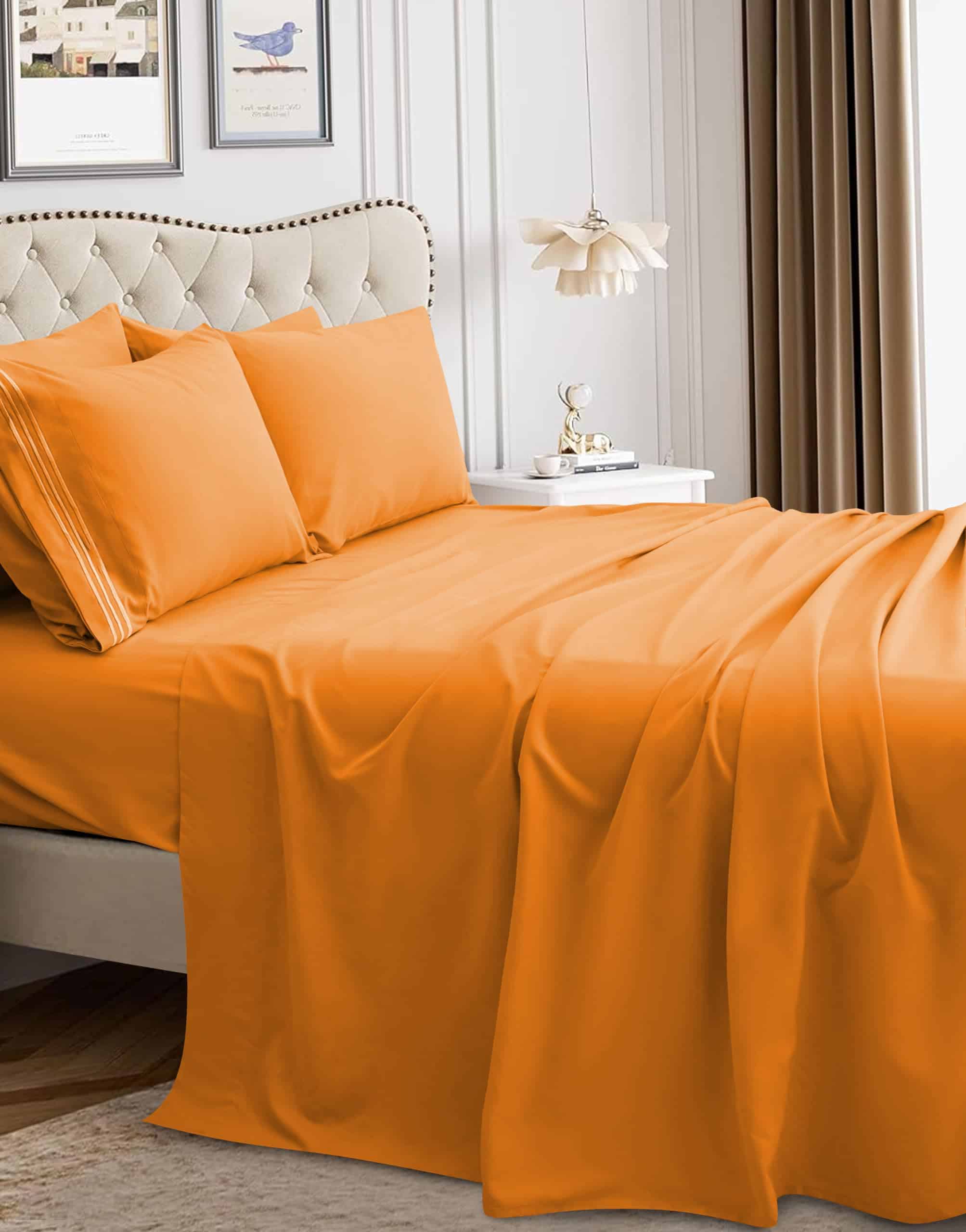 Juego de Sábanas de Lujo Mocassi – 4 Piezas – -Naranja