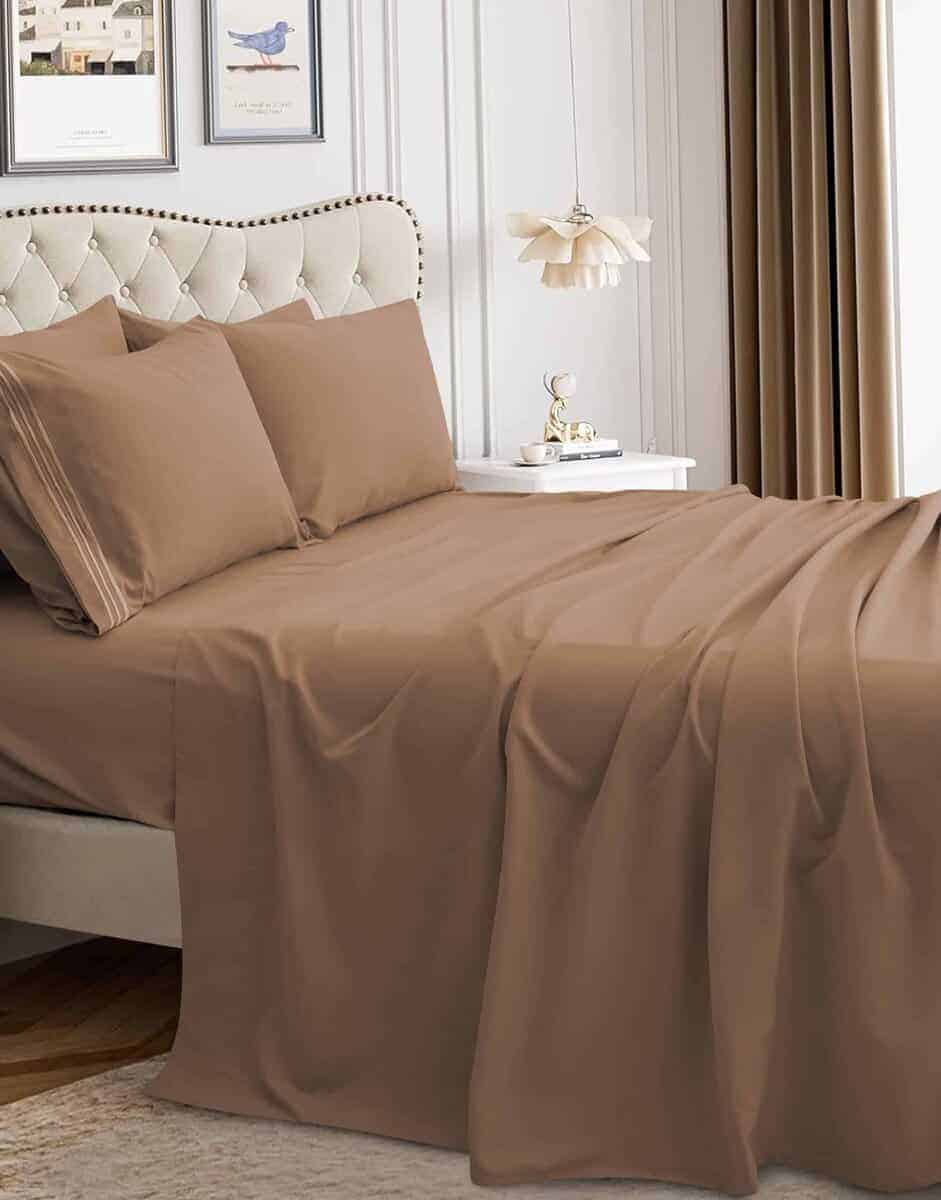 Mocassi Juego de Sábanas de Lujo y Acogedor de 4 Piezas – Bolsillo Profundo – 1800 Microfibra de Calidad Superior de Hotel. Se adapta a colchones de hasta 16 pulgadas de profundidad. Elástico alrededor y estirable para garantizar un ajuste seguro para que tus sábanas no se suban o se muevan en medio de la noche. Nuestro material transpirable y super suave te ayudará a mantenerte fresco en las noches de verano calurosas, pero también proporcionará un calor cómodo en los meses más fríos. Todos los tamaños serán juegos de 4 piezas, incluyendo 1 sábana ajustable, 1 sábana plana y 2 fundas de almohada. Material resistente a las manchas y de larga duración en general. Si se cuidan correctamente, tus sábanas permanecerán suaves y libres de arrugas durante años. Entendemos el valor de tu tiempo, por eso estas sábanas están elaboradas con increíbles hilos libres de arrugas. Cuidado fácil y ajuste perfecto. Instrucciones de cuidado: No usar blanqueador. Lavar a máquina en frío con colores similares en ciclo suave. Secar en secadora a baja temperatura para evitar dañar tus sábanas.