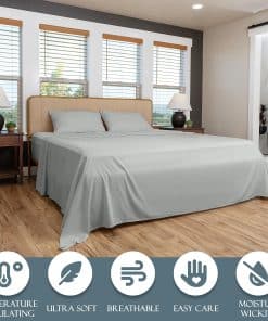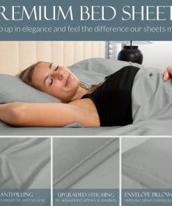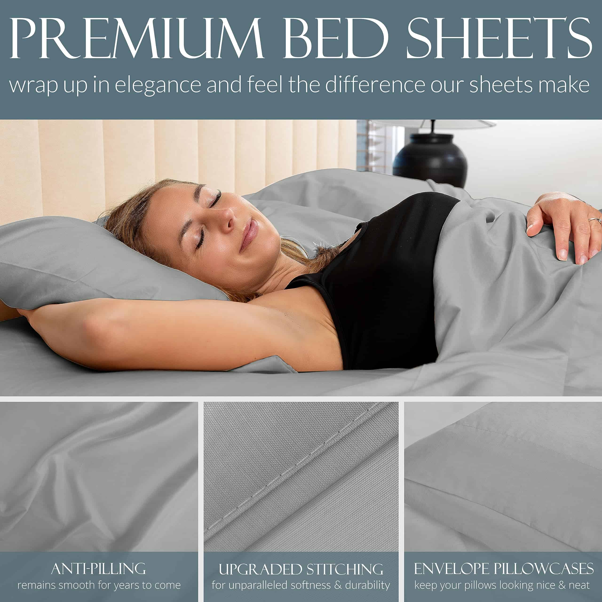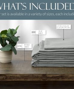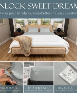 1. DUERMA MEJOR CON NUESTRA MEZCLA TRANSPIRABLE – ¡Disfrute de la experiencia de sueño definitiva con la mezcla perfectamente equilibrada de viscosa pura hecha de bambú y microfibra cepillada para sentirse acogedor de forma suprema! ¡Nuestras sábanas están diseñadas para personas calurosas y frías para ser naturalmente termorreguladas, transpirables e hipoalergénicas! 2. DEJE DE BATALLAR CON SU SÁBANA AJUSTABLE – ¡Nuestra sábana ajustable de bolsillo profundo está diseñada con un elástico personalizado premium y una banda elástica adicional en las esquinas para reducir el amontonamiento y deslizamiento, asegurando un ajuste perfecto para su colchón! 3. SIEMPRE SE VE Y SE SIENTE LISO – ¡Nuestras propiedades resistente a las arrugas y anti-pilling le permiten pasar menos tiempo arreglando su cama y más tiempo disfrutándola! ¡Desde casa hasta hotel, esta es la colección de sábanas de primera calidad perfecta! 4. REAVIVE LA SALUD Y EL BIENESTAR – Los materiales de lujo y mullidos de este juego de sábanas fomentan un sueño profundo y ayudan a revitalizar su cuerpo y su experiencia en el dormitorio. Con un sueño de mayor calidad, su salud y bienestar alcanzarán nuevas alturas. 5. GARANTÍA DE SATISFACCIÓN DEL 100% – ¡Amamos nuestras sábanas y sabemos que usted también las amará! ¡Estamos tan seguros de que le encantarán nuestras sábanas que ofrecemos una garantía de satisfacción del 100%! ¡Si alguna vez está insatisfecho con el rendimiento de nuestro producto, avísenos y lo reemplazaremos!