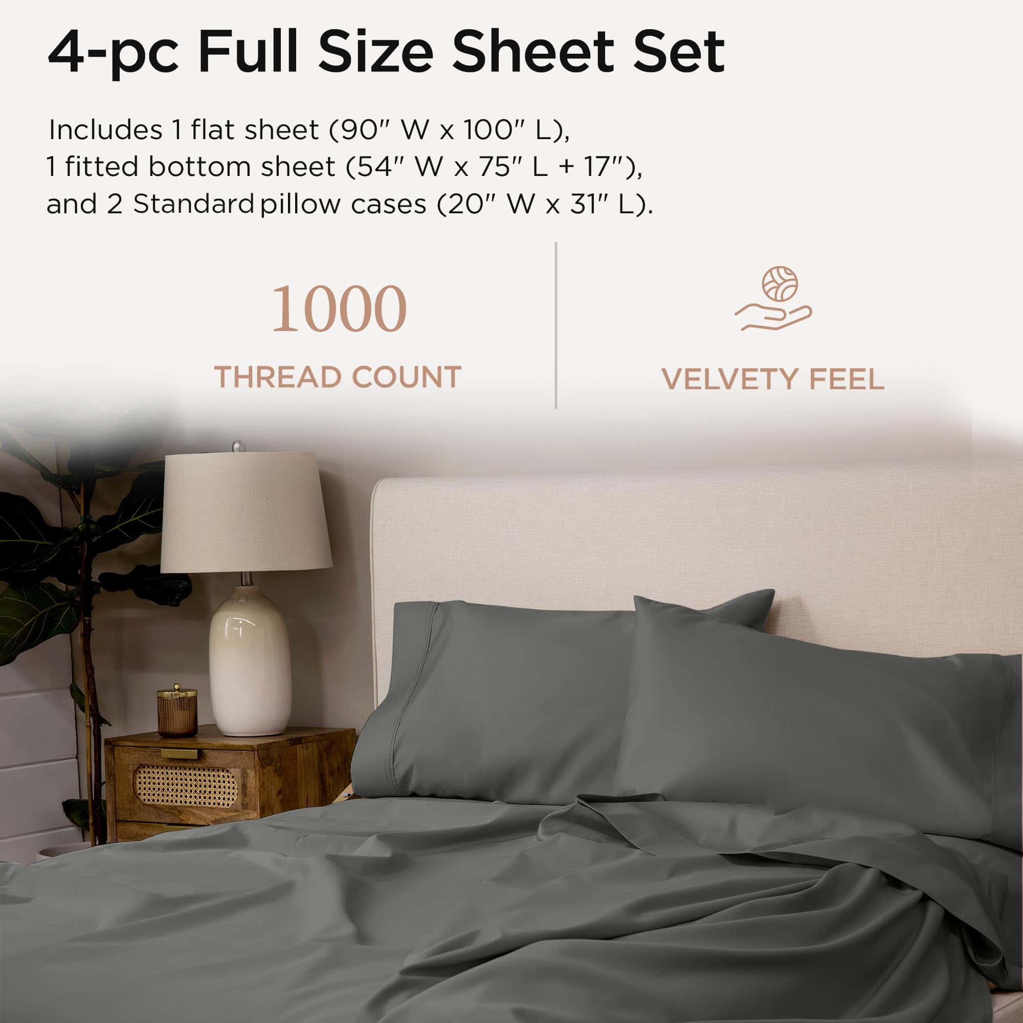 ELEGANT BEDDING SET WITH SIZABLE DEEP POCKET BOTTOM SHEETS: Get the feeling of sleeping on luscious, thick clouds with our rich, high thread count sheet set. Each luxurious 4 piece Full size sheet set which includes 1 flat sheet (90″ W x 100″ L), 1 fitted sheet (54″ W x 75″ L + 17″ deep pocket) and 2 Standard pillowcases (20″ W x 31″ L). Sleep without any worry of bunched up bedding on our snugly fitting bottom sheet. It has a generously sized deep pocket with an all-around elastic. CERTIFIED & SUSTAINABLE PRACTICES WITH 100% SATISFACTION GUARANTEE: We take pride in making some of the world�s finest linens while respecting the environment. Our products and practices are free from harmful chemicals, earning the OEKO TEX certification. All these premium sheets are manufactured in a wind and solar energy powered factory. They are packed in a reusable cotton tote bag and delivered with a 100% satisfaction guarantee, giving you exceptional customer service.