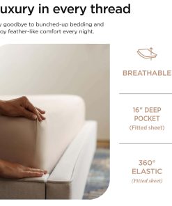 2. SÁBANAS DE AJUSTE PERFECTO CON BOLSILLO PROFUNDO Y ELÁSTICO EN TODA LA MANCHA: Cada juego de sábanas tamaño King de 4 piezas que incluye 1 sábana plana (110″ Ancho x 104″ Largo), 1 sábana ajustable (78″ Ancho x 80″ Largo + 16″ de bolsillo profundo) y 2 fundas de almohada King (20″ Ancho x 40″ Largo). Con una sábana bajera de bolsillo profundo elástica, no solo puedes hacer tu cama con facilidad sino también dormir sin la preocupación de que las sábanas se amontonen. La costura de estas sábanas y fundas de almohada también les da un aspecto elegante y con estilo.