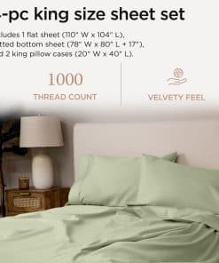 3. JUEGO DE CAMA ELEGANTE CON SÁBANAS AJUSTABLES DE BOLSILLO PROFUNDO: Siente que duermes en nubes exuberantes y gruesas con nuestro rico juego de sábanas de alto hilo. Cada lujoso juego de 4 piezas tamaño King incluye 1 sábana plana (110″ de ancho x 104″ de largo), 1 sábana ajustable (78″ de ancho x 80″ de largo + 17″ de bolsillo profundo) y 2 fundas de almohada King (20″ de ancho x 40″ de largo). Duerme sin preocuparte de que la ropa de cama se amontone en nuestra sábana inferior ajustada. Tiene un bolsillo profundo de tamaño generoso con elástico en todo el contorno.