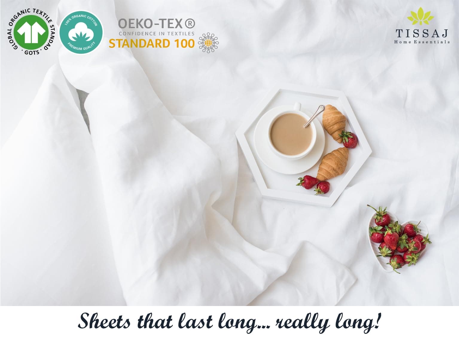 Disfruta del lujo y la comodidad con este juego de sábanas de la colección Tissaj. Este juego de 4 piezas tamaño California King está hecho de 100% algodón orgánico certificado. Las sábanas tienen un tejido de satén que proporciona una sensación suave y lujosa. El color gris nube le dará a tu dormitorio un aspecto elegante y relajante. Certificado por la máxima autoridad en textiles orgánicos, puedes estar seguro de que estas sábanas son seguras y cómodas para ti y tu familia.