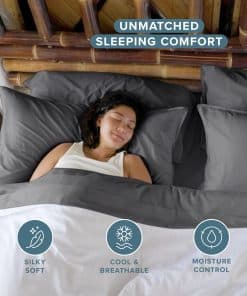 2. CALIDAD PREMIUM: Experimenta la máxima comodidad del rayón hecho de bambú. Con propiedades de absorción de humedad y regulación de temperatura, estas sábanas te permiten mantenerte fresco y seco. Y su textura sedosa solo mejora con cada lavado. Además, son extremadamente duraderas, minimizando el apelotonamiento, el deshilachado y las roturas.