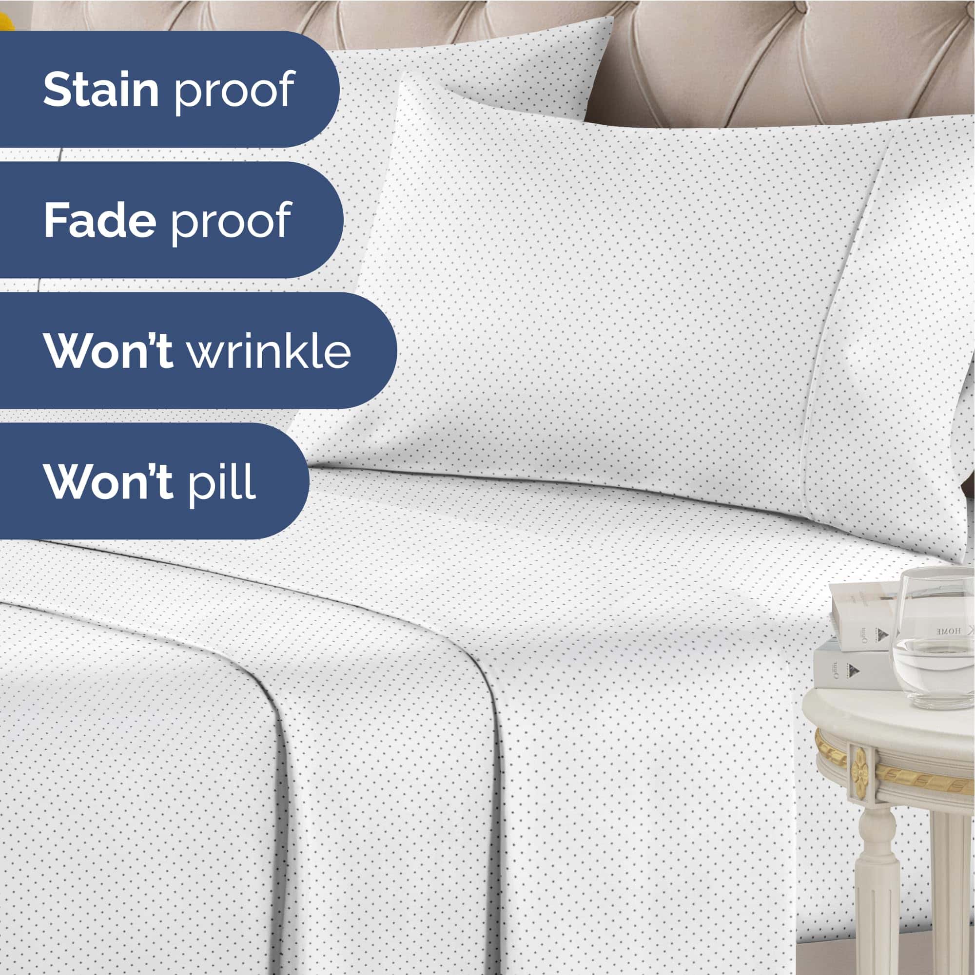 Juego de sábanas de lunares a topos de 4 piezas para cama