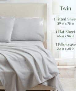 2. QUÉ INCLUYE: 1 Sábana Ajustable Tamaño Individual 39″ x 75″ | 1 Sábana Plana 66″ x 96″ | 1 Funda de Almohada 20″ x 30″.