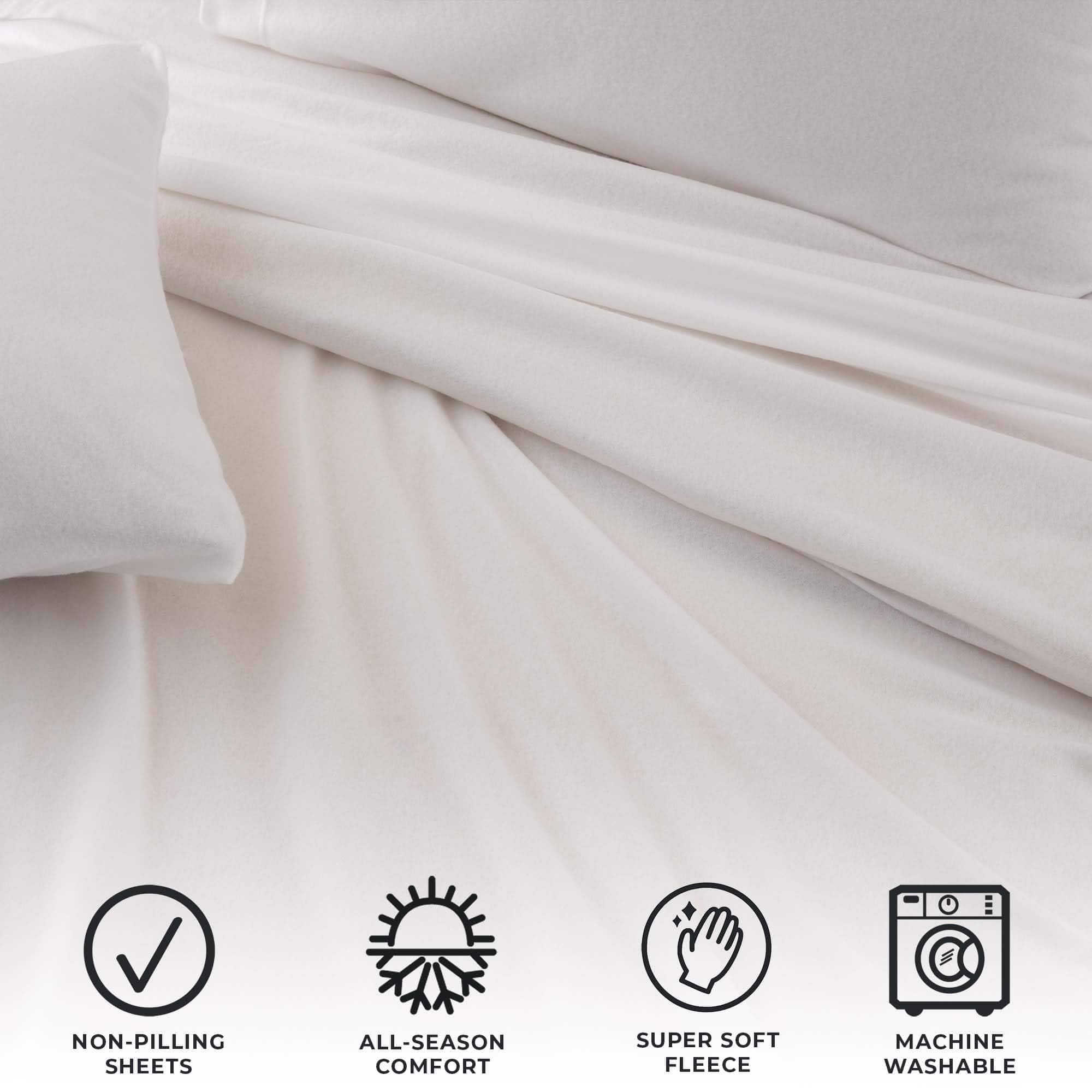 Juego de sábanas de microfelpa para cama King -Blanco invern