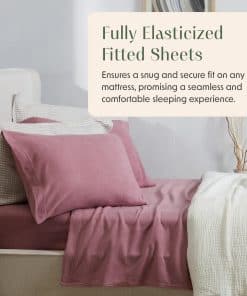 1. CERTIFICADO OEKO-TEX STANDARD 100: Una de las etiquetas más conocidas del mundo para textiles probados en sustancias dañinas. 2. LO QUE INCLUYE: 1 sábana ajustable King 78″ x 80″ | 1 sábana plana 108″ x 102″ | 2 fundas de almohada 20″ x 40″. 3. BOLSILLOS PROFUNDOS: Sábanas ajustables totalmente elásticas que se adaptan a colchones de hasta 18 pulgadas de profundidad. Un ajuste perfecto que se mantiene en su lugar y no se sale. 4. FÁCIL CUIDADO: Lavable a máquina en AGUA FRÍA, secar en ciclo SUAVE para evitar la formación de bolitas. Las sábanas son resistentes a la decoloración, las manchas, el encogimiento y la formación de bolitas. 5. QUEDARÁS TRANQUILO (y también tu cama): ¡La satisfacción del cliente es nuestra obsesión! Estamos seguros de que te encantarán nuestros productos, porque nosotros los amamos. Sabemos que todos tienen su propio estilo, por lo que si no estás 100% satisfecho, trabajaremos contigo para conseguir lo que necesitas, sin hacer preguntas.