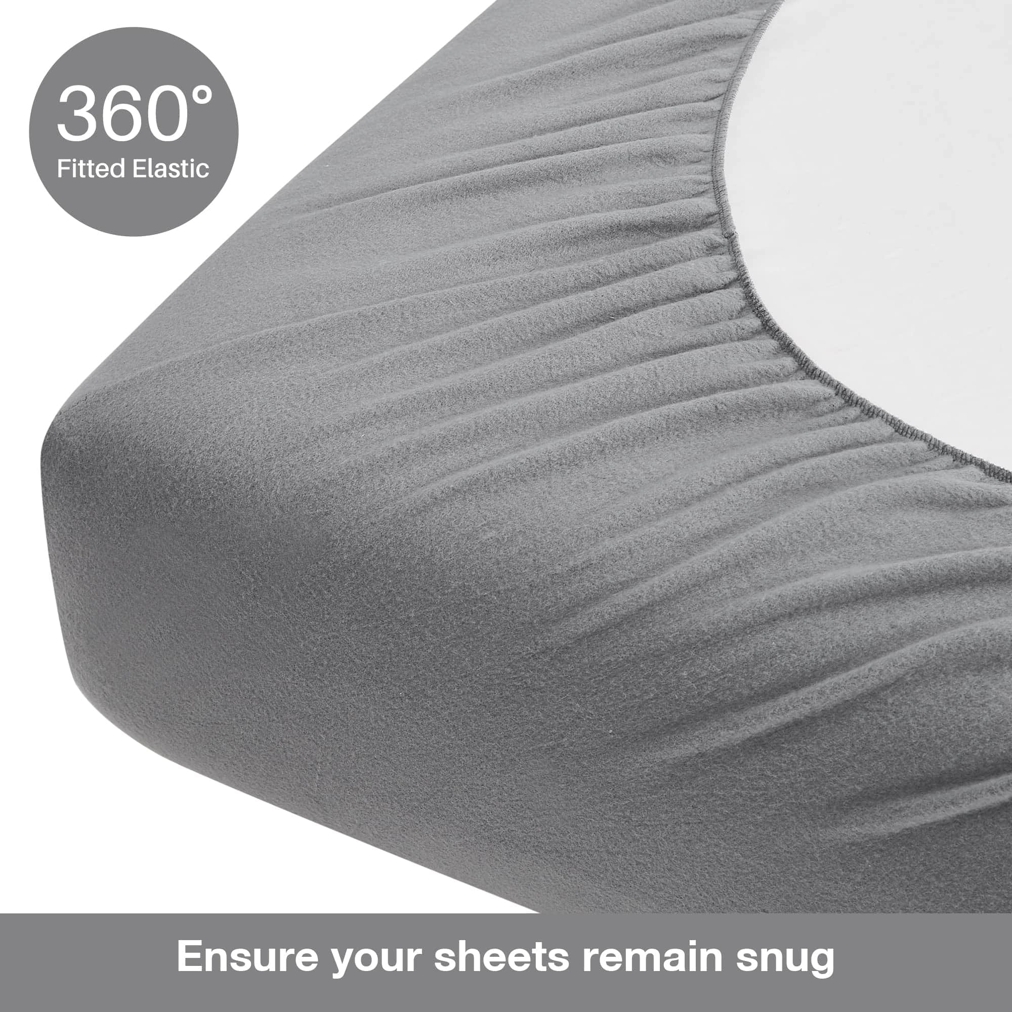 1. Sábana de felpa King definitivamente suave: El juego de sábanas de franela polar gris plateado está hecho de terciopelo premium – El tejido de microfelpa actualizado presenta una alta densidad, tacto suave y sedoso, ofreciendo una textura inigualable. Sin exageraciones, nuestras sábanas de franela polar gris plateado estilo king brindarán el verdadero confort para su cama. 2. Sábanas de terciopelo king cálidas y transpirables: Tu cama calentita está asegurada por las sábanas de microfelpa king de Viviland – Con un grosor adecuado (180 GSM), el juego de sábanas de franela polar gris plateado estilo king ayuda a mantenerte caliente en las noches frías; las sábanas de franela de terciopelo king ofrecen una gran transpirabilidad gracias a su material de microfelpa premium. No te preocupes por sudar en las noches calurosas. 3. Juego de sábanas de franela polar de 4 piezas: el juego de sábanas de terciopelo gris plateado estilo king incluye: juego de sábanas de franela polar estilo king de 4 piezas que incluye 1 sábana ajustable king: 78″ 80″ + 15″, 1 sábana plana king: 102″ 108″ y 2 fundas de almohada king: 20″ 40″ con dobladillo de 4″. El juego de sábanas de franela polar de invierno incluye una sábana ajustable de 15 pulgadas de bolsillo profundo con elástico alrededor, que no solo se ajusta perfectamente sino que no se levanta por los lados, sueño reparador garantizado. 4. Fácil cuidado fácil lavado: el juego de sábanas de terciopelo gris plateado estilo king es lavable a máquina, secar a baja temperatura. Nuestras sábanas de franela polar de invierno cuentan con resistencia a las arrugas, resistencia a la decoloración, resistencia a la contracción y resistencia a las bolitas, manteniendo su forma y suavidad después de varios lavados. 5. Garantía limitada de 1 año: diseñamos nuestro juego de sábanas de franela polar de invierno para que funcione para usted todo el tiempo que las necesite. Si este juego de sábanas de terciopelo king se desgasta en menos de 1 año (uso normal solamente), contacte al vendedor para reemplazarlo.