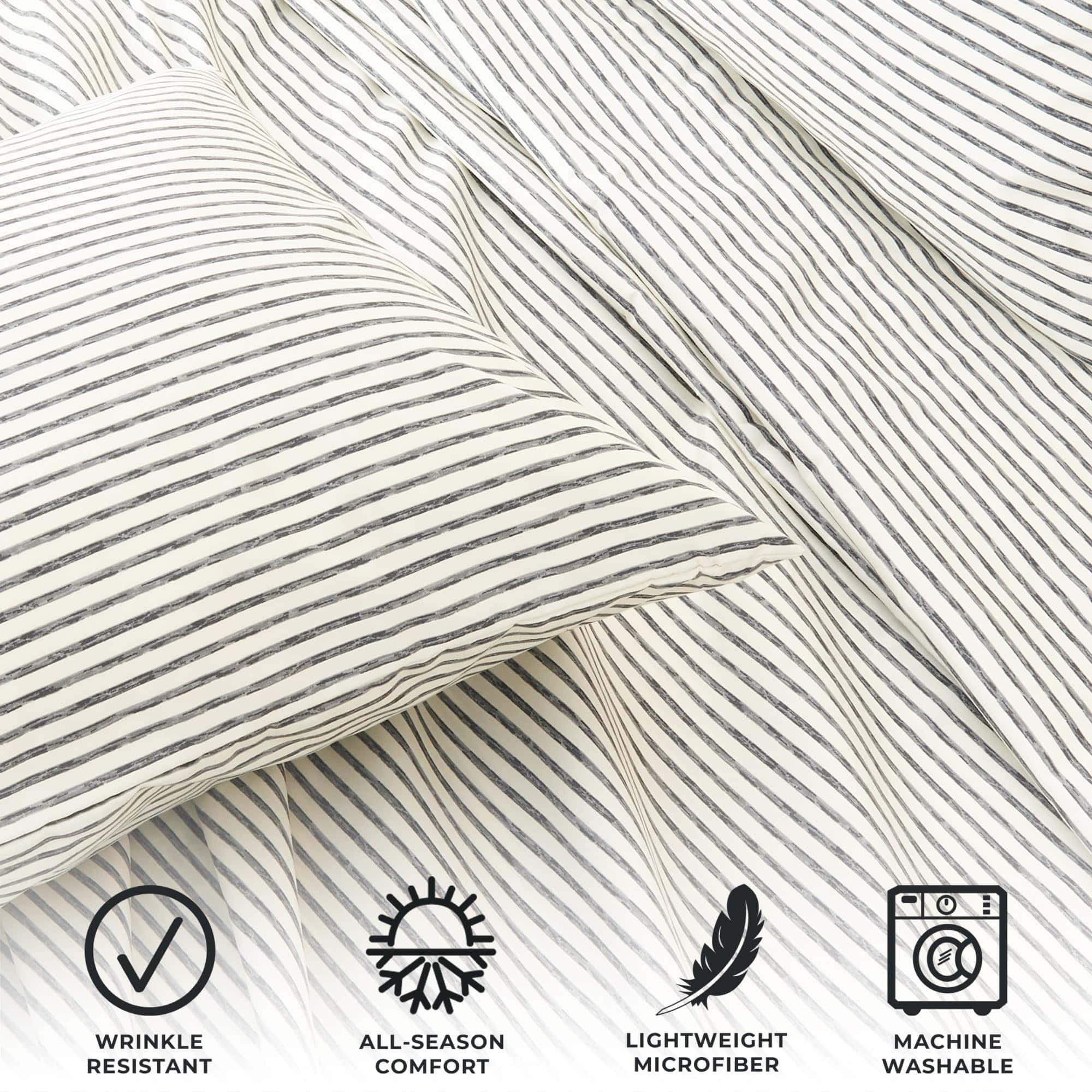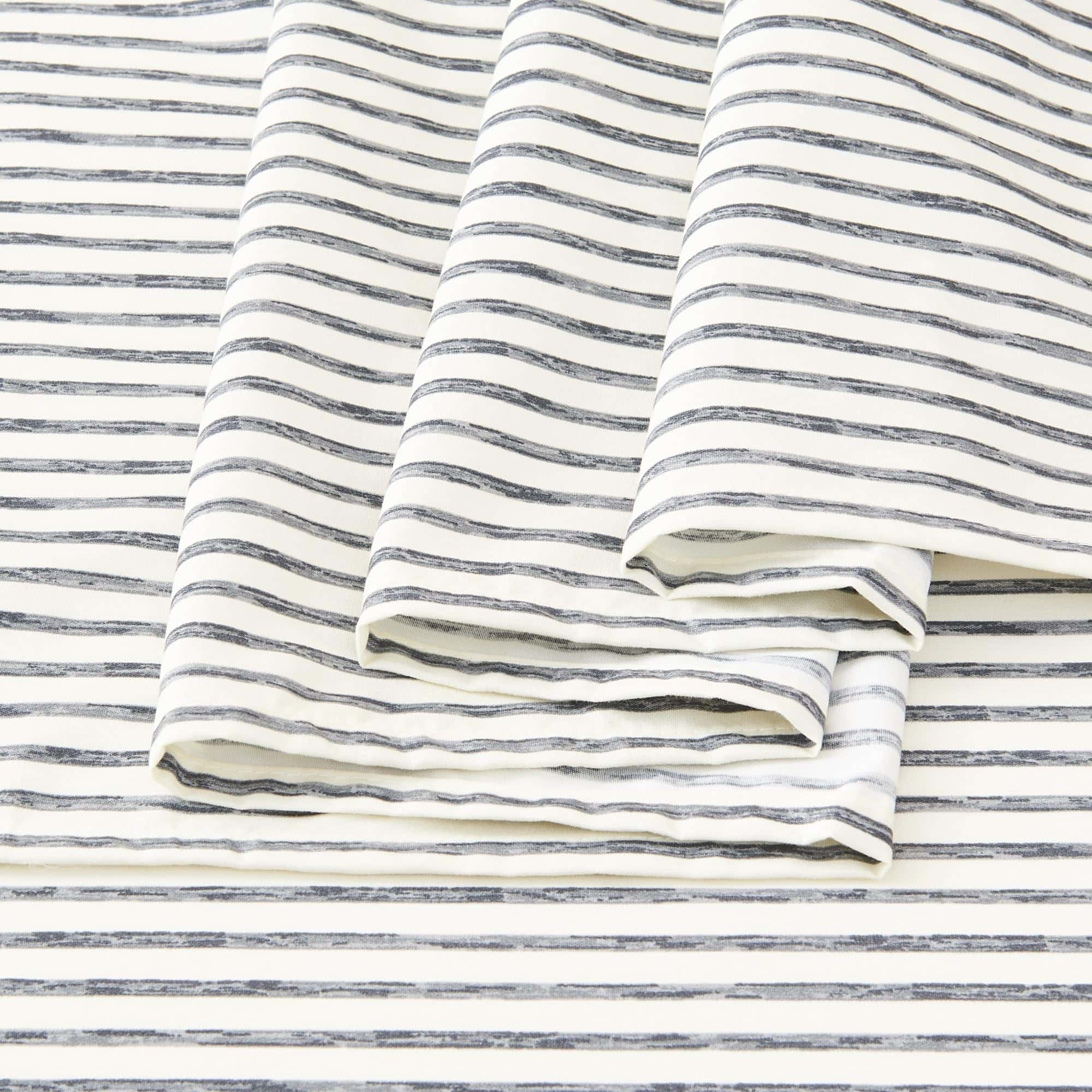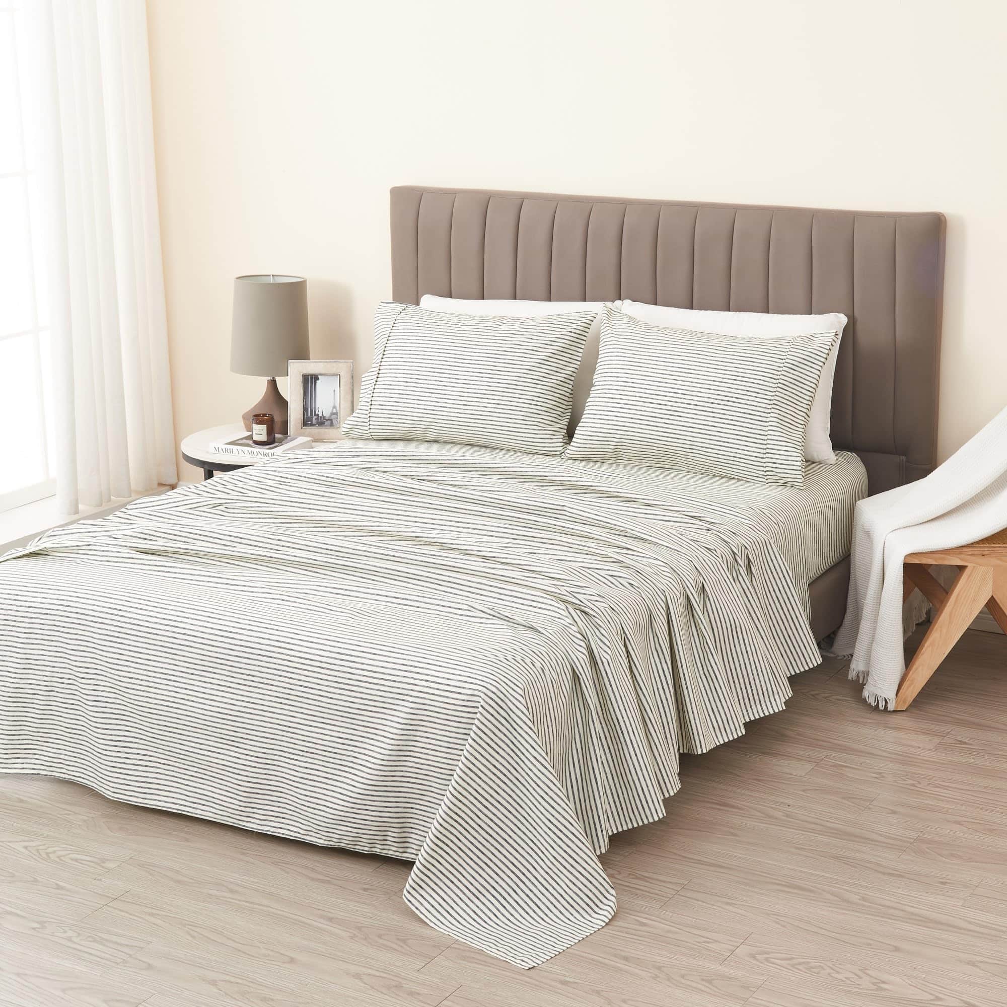 1. Variedad de Estampados a Rayas: Elige entre una variedad de hermosas sábanas estampadas a rayas resistentes al decoloramiento en colores clásicos. Cada juego viene con 1 sábana ajustable, 1 sábana plana y 2 fundas de almohada (1 para tamaño Twin).