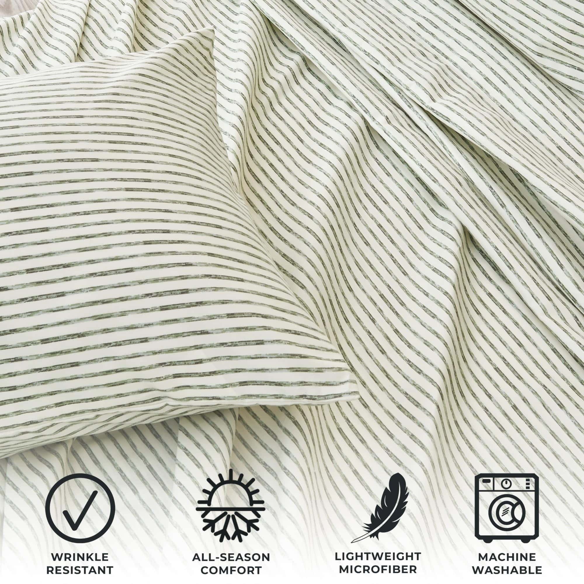 Juego de sábanas de microfibra a rayas de 4 -Rayas horizonta