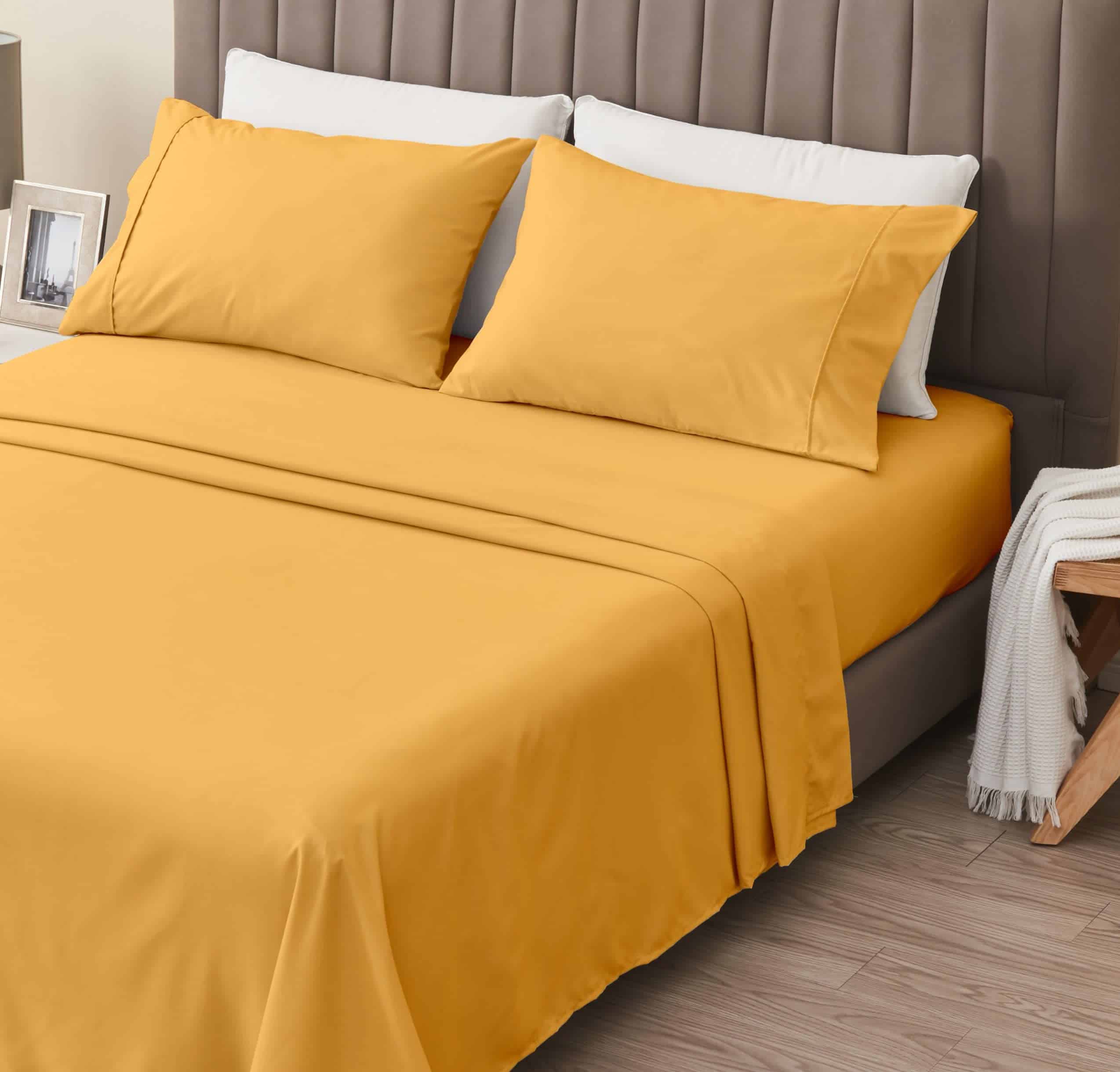 Juego de sábanas de microfibra amarillo de 4 piezas Great