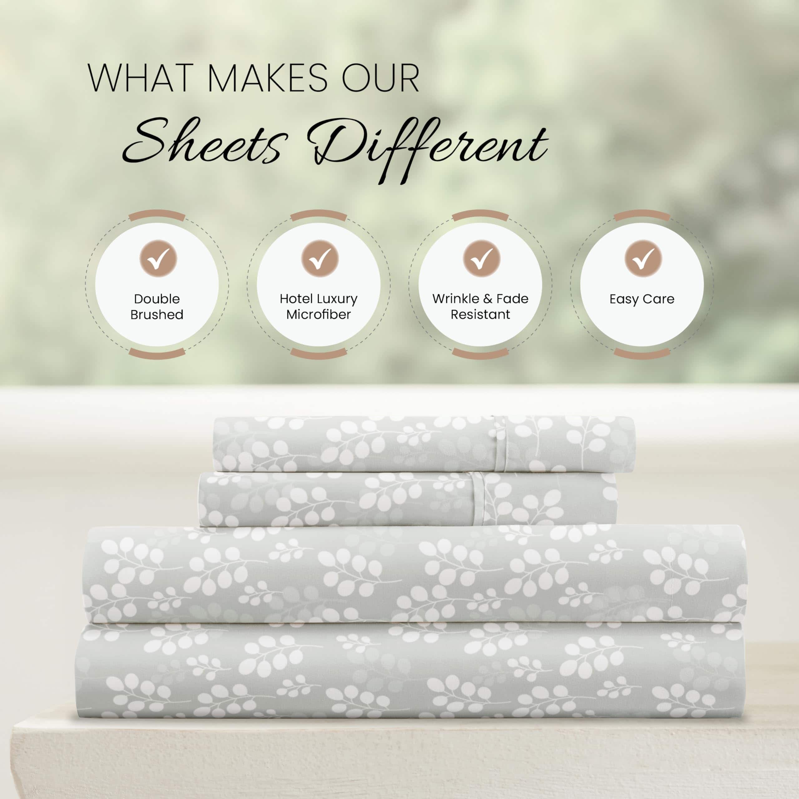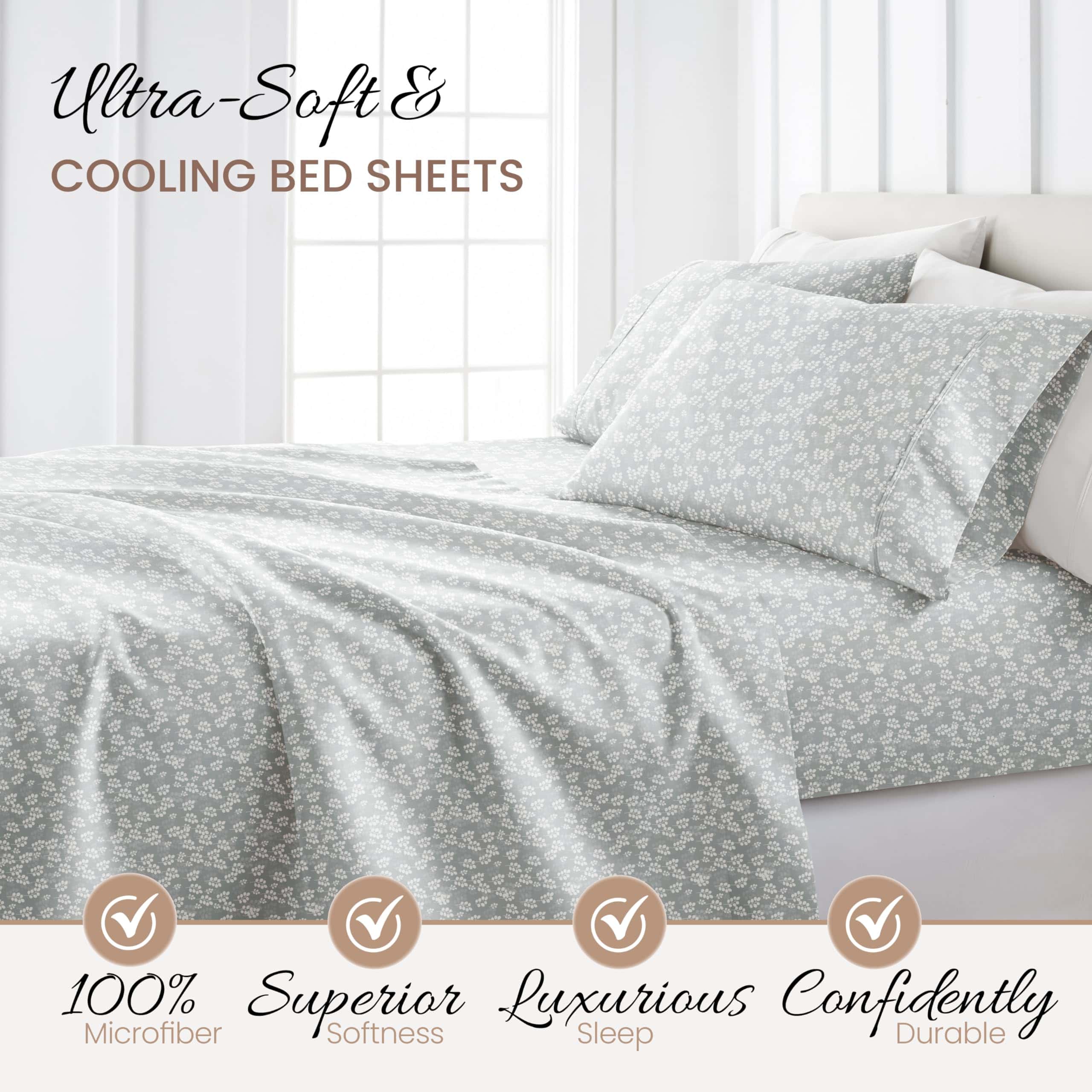 El set de sábanas Simply Soft Premium Ultra Soft de 4 piezas en Gris de trigo está diseñado pensando en tu comodidad. Añade un acento de diseñador a la decoración de tu dormitorio con este atemporal estampado de trigo creado artísticamente para ser una maravillosa adición a cualquier dormitorio. Hecho con los mejores hilos de microfibra de doble cepillado importados, creando un nuevo estándar en suavidad y transpirabilidad, este set de 4 piezas hará que sea increíblemente difícil levantarse de la cama por la mañana. Nuestros hilos premium son dos veces más duraderos que el algodón, completamente sin arrugas y perfectos para todas las estaciones. GUÍA DE TAMAÑOS: El set de tamaño Twin incluye: 1 sábana ajustable Twin: 99cm W x 191cm L + 41cm. 1 sábana plana Twin: 168cm W x 244cm L. 1 funda de almohada estándar: 51cm W x 76cm L. El set de tamaño Full incluye: 1 sábana ajustable Full: 137cm W x 191cm L + 41cm. 1 sábana plana Full: 206cm W x 244cm L. 2 fundas de almohada estándar: 51cm W x 76cm L. El set de tamaño Queen incluye: 1 sábana ajustable Queen: 152cm W x 203cm L + 41cm. 1 sábana plana Queen: 229cm W x 259cm L. 2 fundas de almohada estándar: 51cm W x 76cm L. El set de tamaño King incluye: 1 sábana ajustable King: 198cm W x 203cm L + 41cm. 1 sábana plana King: 259cm W x 267cm L. 2 fundas de almohada King: 51cm W x 101cm L. El set de tamaño California King incluye: 1 sábana ajustable California King: 183cm W x 213cm L + 41cm. 1 sábana plana California King: 274cm W x 259cm L. 2 fundas de almohada King: 51cm W x 101cm L