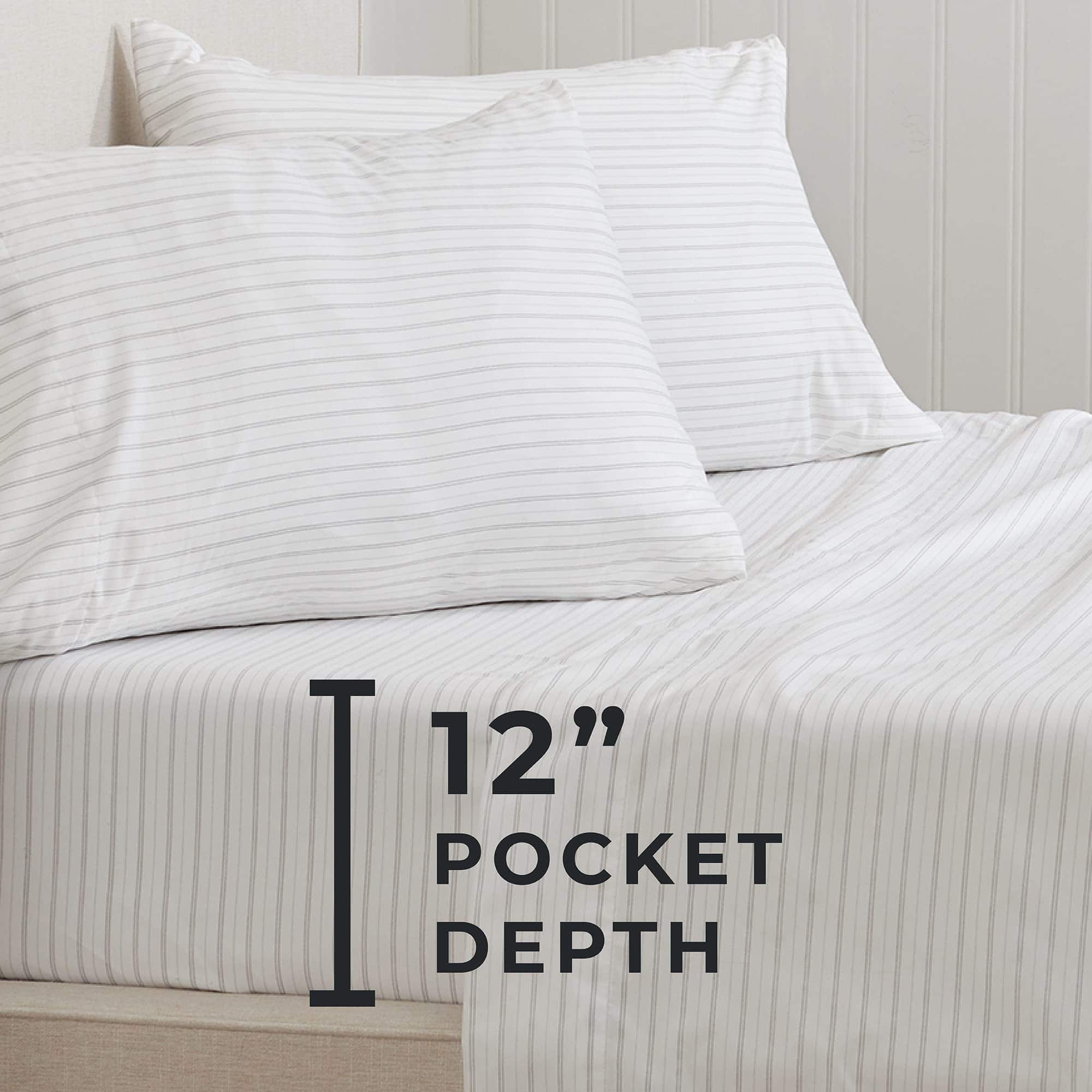 Made from high quality fabric, this ultra soft microfiber sheet set is durable. These stripe printed sheets are warm and cozy enough for fall and winter while still being breathable and lightweight for spring and summer. With multiple stripe color options, these microfiber sheets would make the perfect sheet set for every season. Our microfiber sheets are brushed for softness. We offer plenty of printed options, even floral bed sheets. Sleep better than ever through any season with these comfortable bed sheets. The pocket size of these sheets is purposefully deep. It fits up to a 14″ thick mattress for Full, Queen, King & California King and up to a 12″ mattress for Twin & Twin XL. These sheets are easy to care for, as they are machine washable, wrinkle-resistant, fade-resistant, shrink-resistant & pill-resistant. We promise to deliver exceptional products free from harmful chemicals and dyes. Rest assured, your Great Bay Home bedding is clean and made from quality materials, perfect and safe for you and your family. At Great Bay Home, customer satisfaction is of utmost importance to us. We are confident that you will love our products, but if you’re not satisfied with these flannel sheets, our customer service team will work with you to make it right. We have plenty of products available. Find your perfect bedding match in one of our collections. From floral sheets to winter plaid sheets, you are sure to find something perfect and cozy for your home!