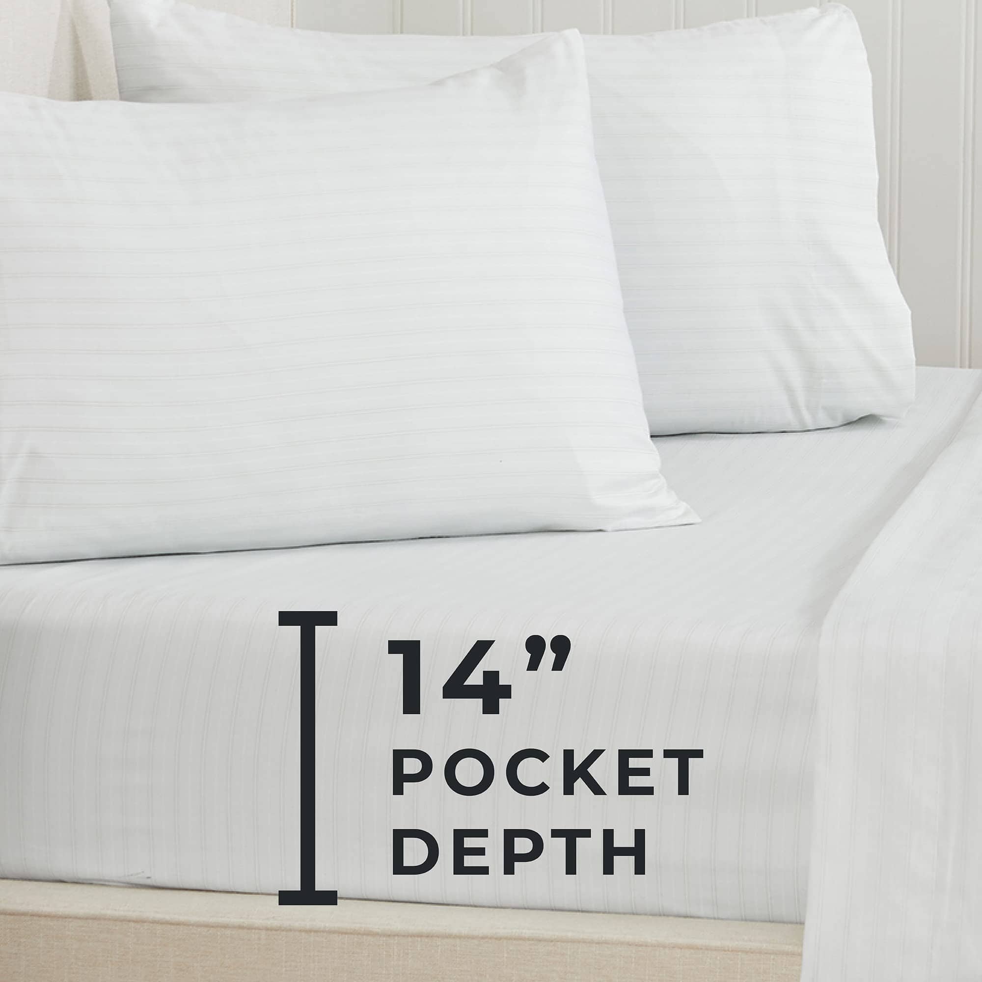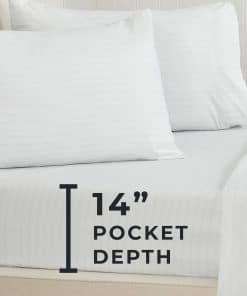 El tamaño del bolsillo de estas sábanas es intencionalmente profundo. Se adapta a un colchón de hasta 14″ de grosor para Full, Queen, King & California King y hasta un colchón de 12″ para Twin & Twin XL. Estas sábanas son fáciles de cuidar, ya que son lavables a máquina, resistentes a las arrugas, la decoloración, la contracción y las bolitas. Estas sábanas de microfibra son duraderas y de larga duración.