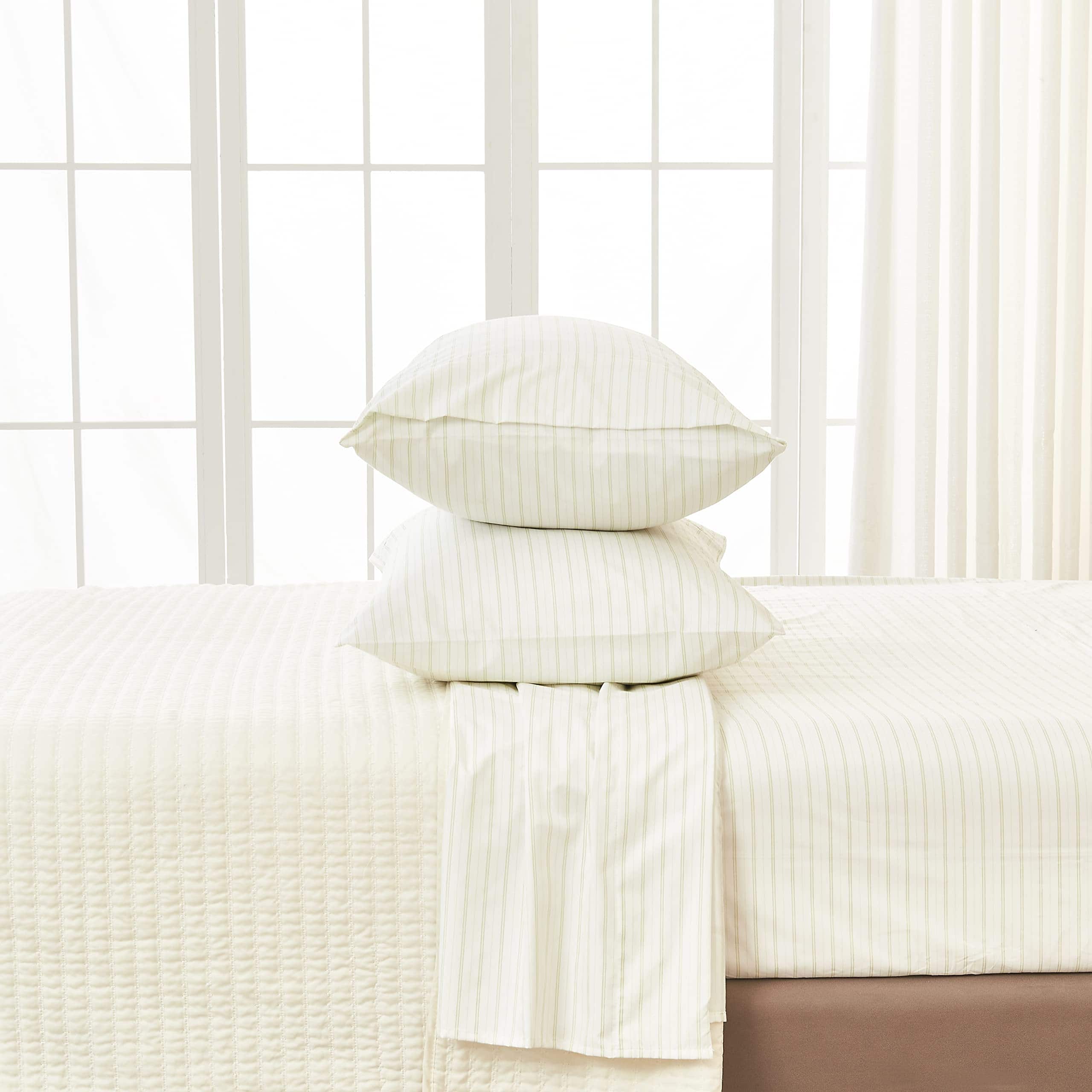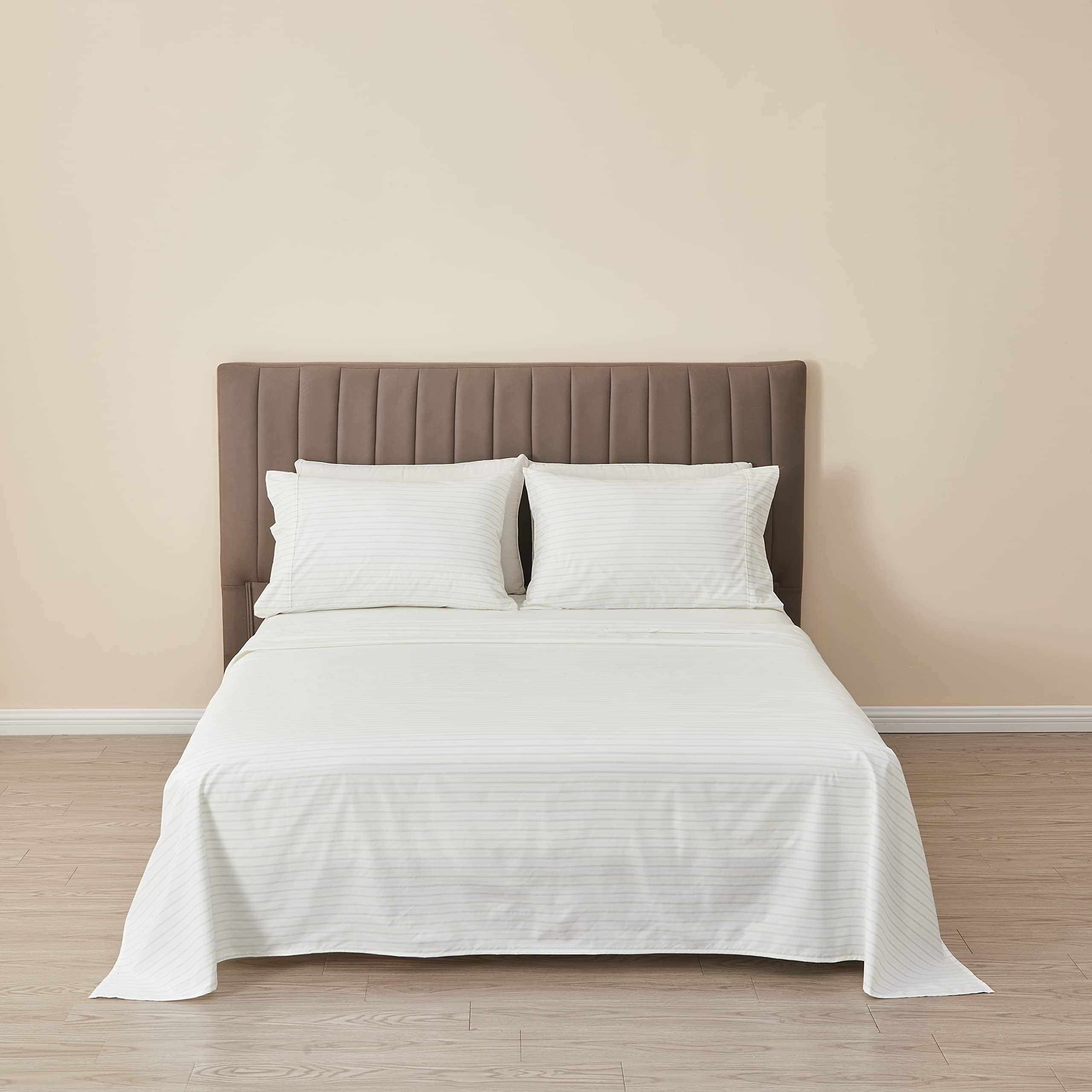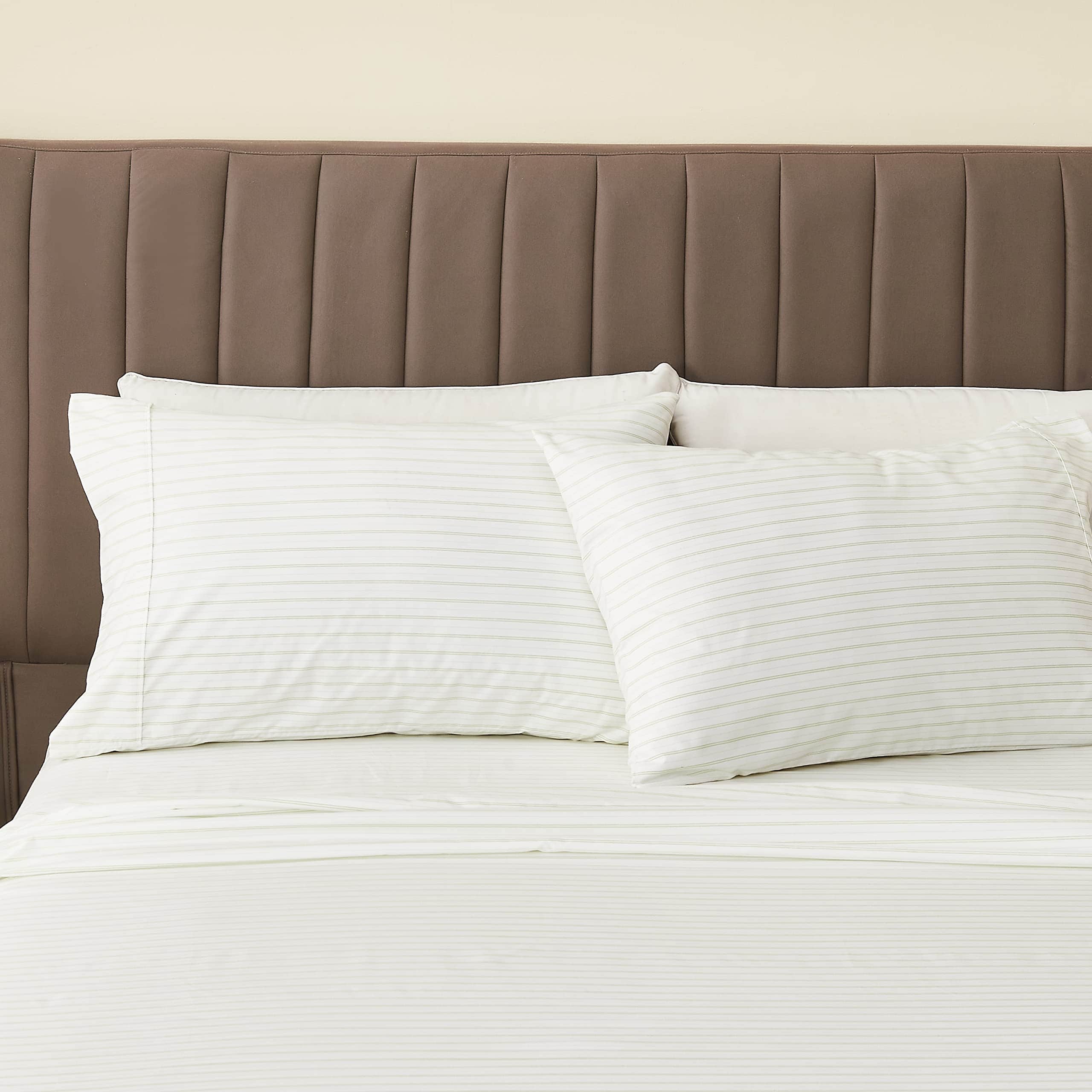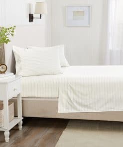 1. Sábanas de microfibra cepillada: Hechas de tela de alta calidad, este juego de sábanas de microfibra ultra suave es duradero. Estas sábanas estampadas a rayas son lo suficientemente cálidas y acogedoras para el otoño e invierno, pero siguen siendo transpirables y ligeras para la primavera y el verano. Con opciones de colores de rayas múltiples, estas sábanas de microfibra serían el juego de sábanas perfecto para cada temporada.