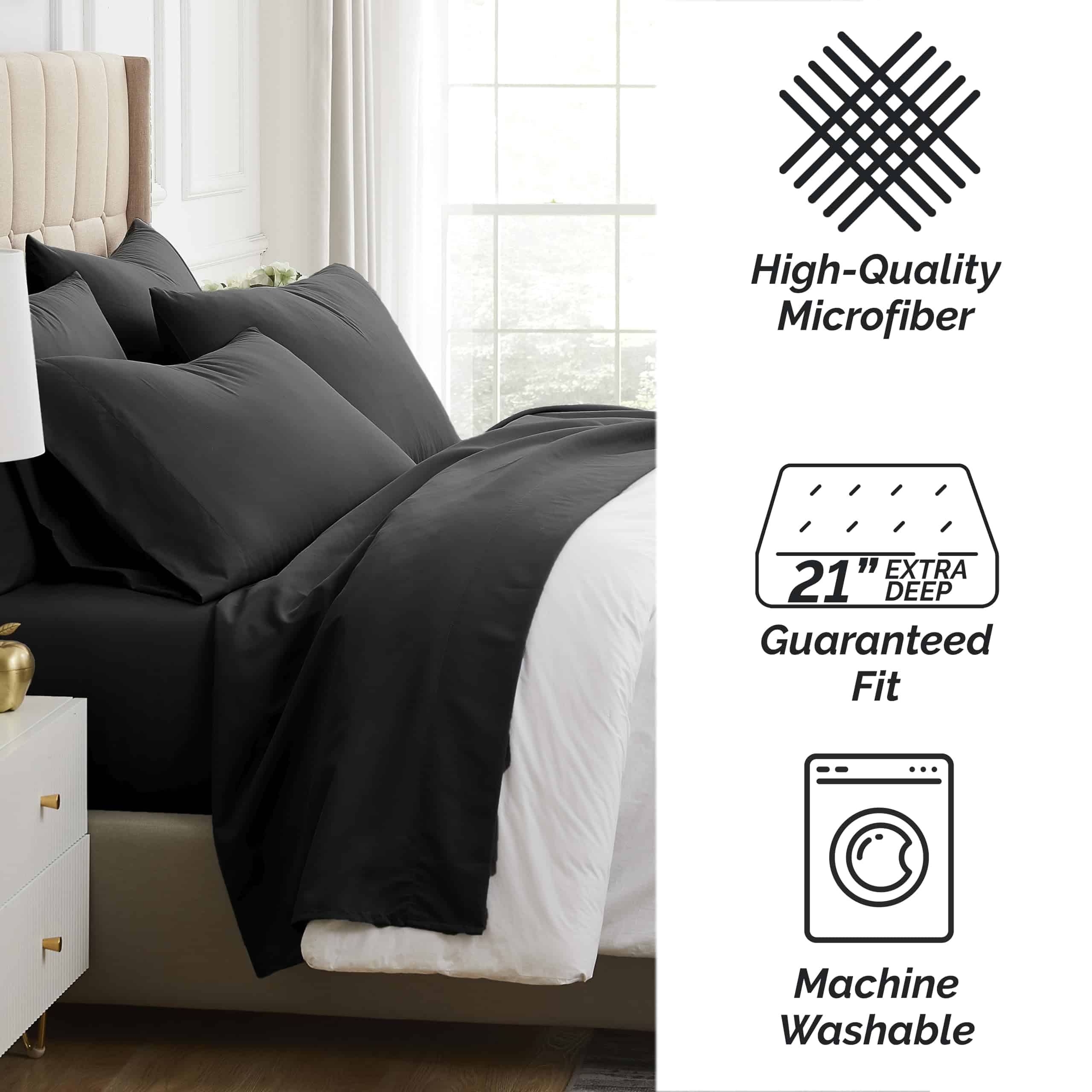 Juego de sábanas de microfibra de 6 piezas -Negro
