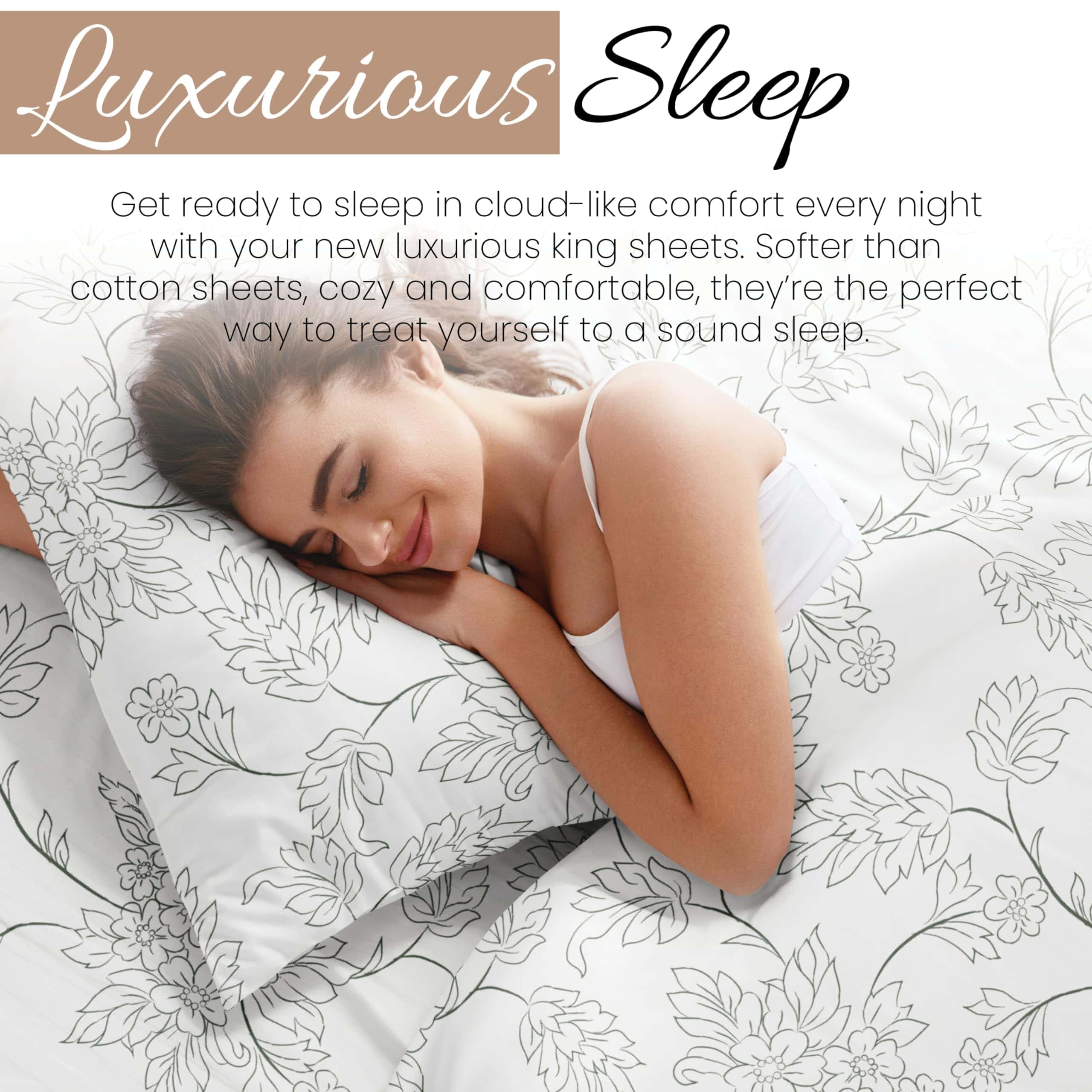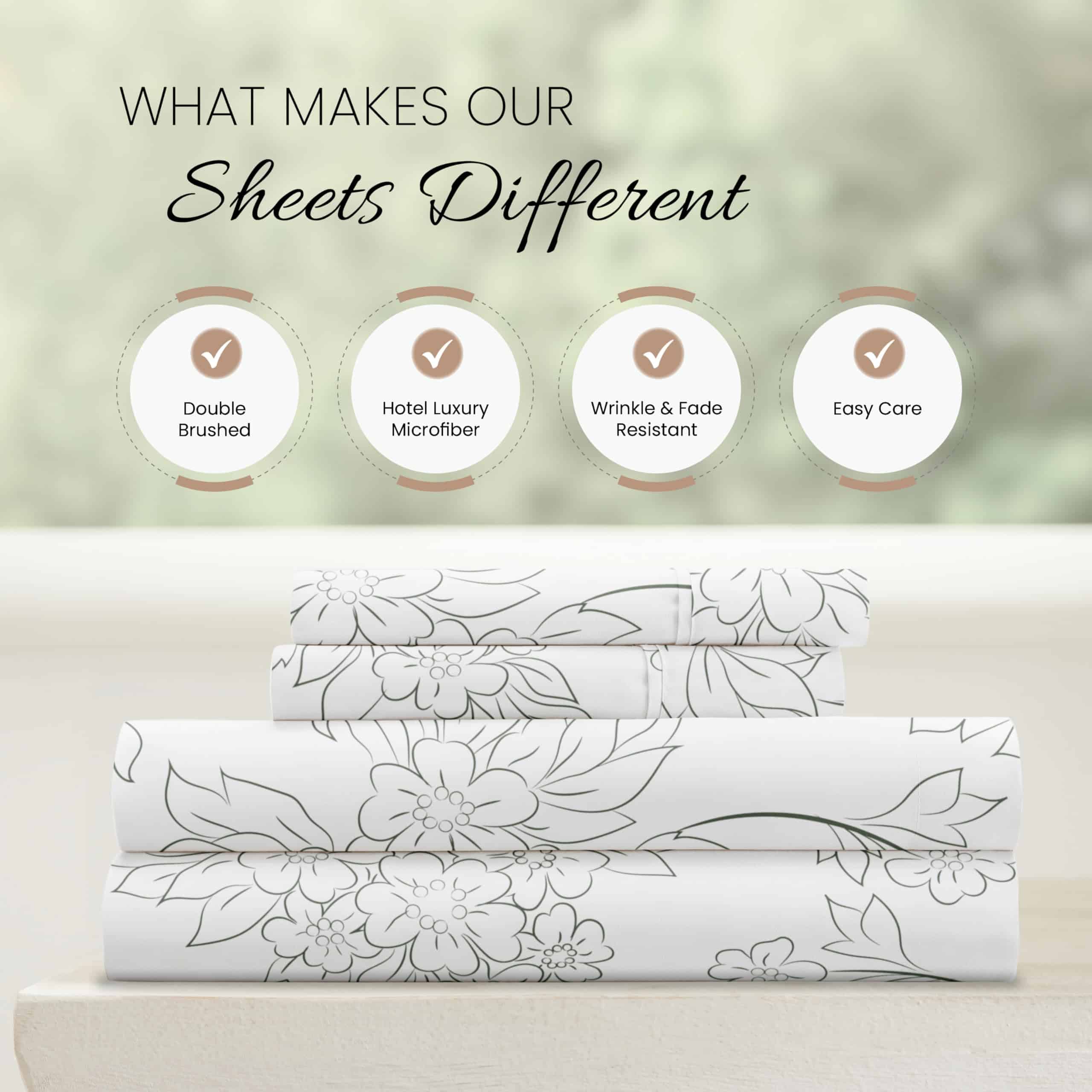 El Juego de Sábanas Premium Ultra Suaves de 4 Piezas con Patrón de Hojas de Vid de Simply Soft está diseñado pensando en tu comodidad. Añade un acento de diseñador a la decoración de tu dormitorio con este atemporal patrón de hojas de vid creado artísticamente para ser una maravillosa adición a cualquier dormitorio. Hecho de las mejores microfibras importadas de doble cepillado que crean un nuevo estándar en suavidad y transpirabilidad, este juego de sábanas de 4 piezas hará que sea increíblemente difícil levantarte de la cama por la mañana. Nuestras microfibras premium son dos veces más duraderas que el algodón, completamente libres de arrugas y perfectas para todas las estaciones. GUÍA DE TALLAS: El juego de tamaño Twin incluye:. 1 Sábana Ajustable Twin: 39″ An x 75″ L + 16″. 1 Sábana Plana Twin: 66″ An x 96″ L. 1 Funda de Almohada Estándar: 20″ An x 30″ L El juego de tamaño Full incluye:. 1 Sábana Ajustable Full: 54″ An x 75″ L + 16″. 1 Sábana Plana Full: 81″ An x 96″ L. 2 Fundas de Almohada Estándar: 20″ An x 30″ L El juego de tamaño Queen incluye:. 1 Sábana Ajustable Queen: 60″ An x 80″ L + 16″. 1 Sábana Plana Queen: 90″ An x 102″ L. 2 Fundas de Almohada Estándar: 20″ An x 30″ L El juego de tamaño King incluye:. 1 Sábana Ajustable King: 78″ An x 80″ L + 16″. 1 Sábana Plana King: 102″ An x 105″ L. 2 Fundas de Almohada King: 20″ An x 40″ L El juego de tamaño California King incluye:. 1 Sábana Ajustable King de California: 72″ An x 84″ L + 16″. 1 Sábana Plana King de California: 108″ An x 102″ L. 2 Fundas de Almohada King: 20″ An x 40″ L