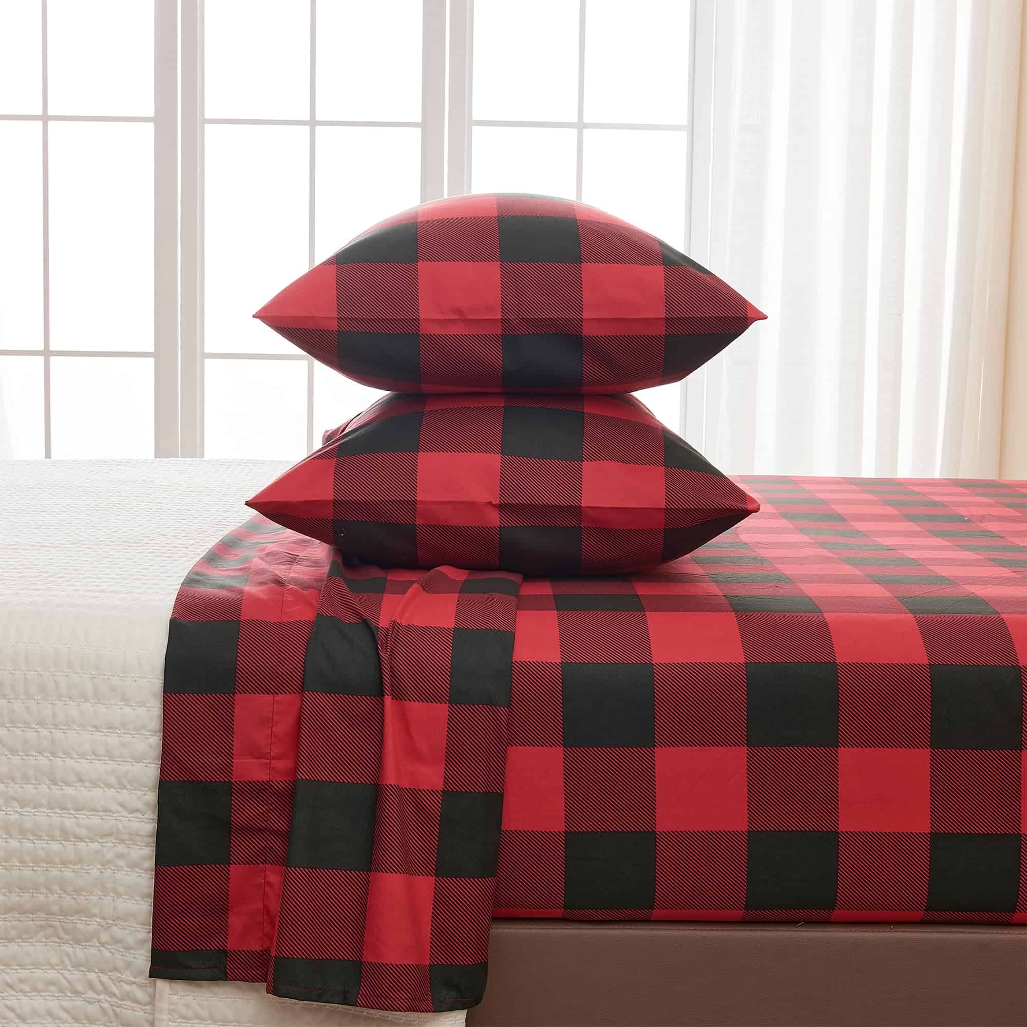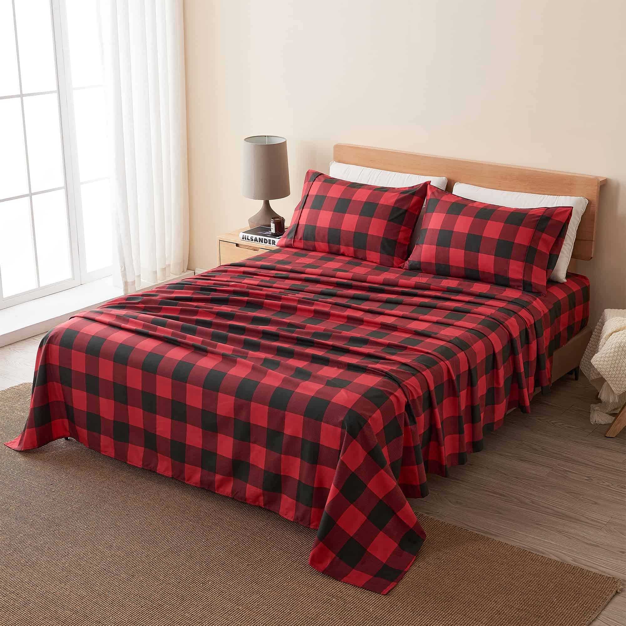 Juego de Sábanas de Microfibra Estampadas de 4 -Buffalo Chec