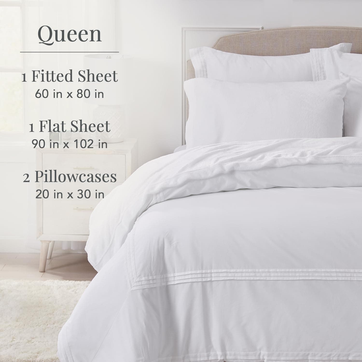 1. CALIDAD SUPERIOR: Sábana 100% de microfibra 190 GSM. 2. ¿QUÉ SE INCLUYE? : Queen 1 sábana ajustable 60″ x 80″ | 1 sábana plana 90″ x 102″ | 2 fundas de almohada 20″ x 30″. 3. BOLSILLOS PROFUNDOS: Sábanas ajustables con elástico completo que se ajustan a colchones de hasta 18 pulgadas de profundidad. Ajuste perfecto que se mantiene en su lugar y no se desprende. 4. CUIDADO FÁCIL: Lavable a máquina en agua fría, secar a baja temperatura. Las sábanas son resistentes a la decoloración, manchas, encogimiento y bolitas. 5. DESCANSE TRANQUILO (juego de palabras): ¡La satisfacción del cliente es nuestra obsesión! Estamos seguros de que te encantarán nuestros productos, porque nosotros los amamos. Sabemos que todos tienen su propio estilo, así que si no estás 100% satisfecho, trabajaremos contigo para brindarte lo que necesitas, sin hacer preguntas.