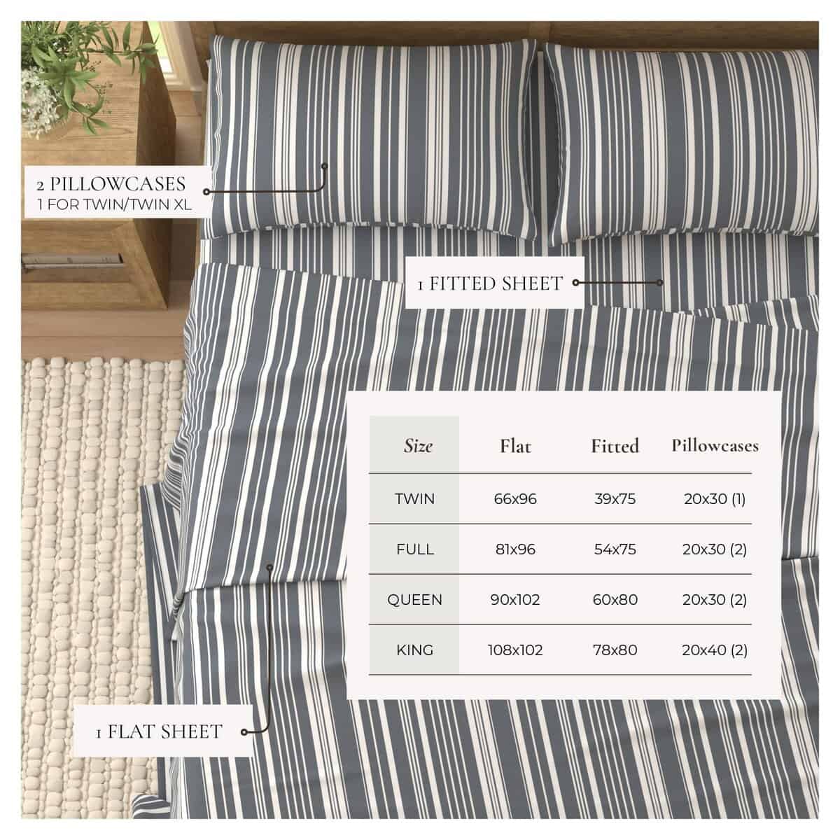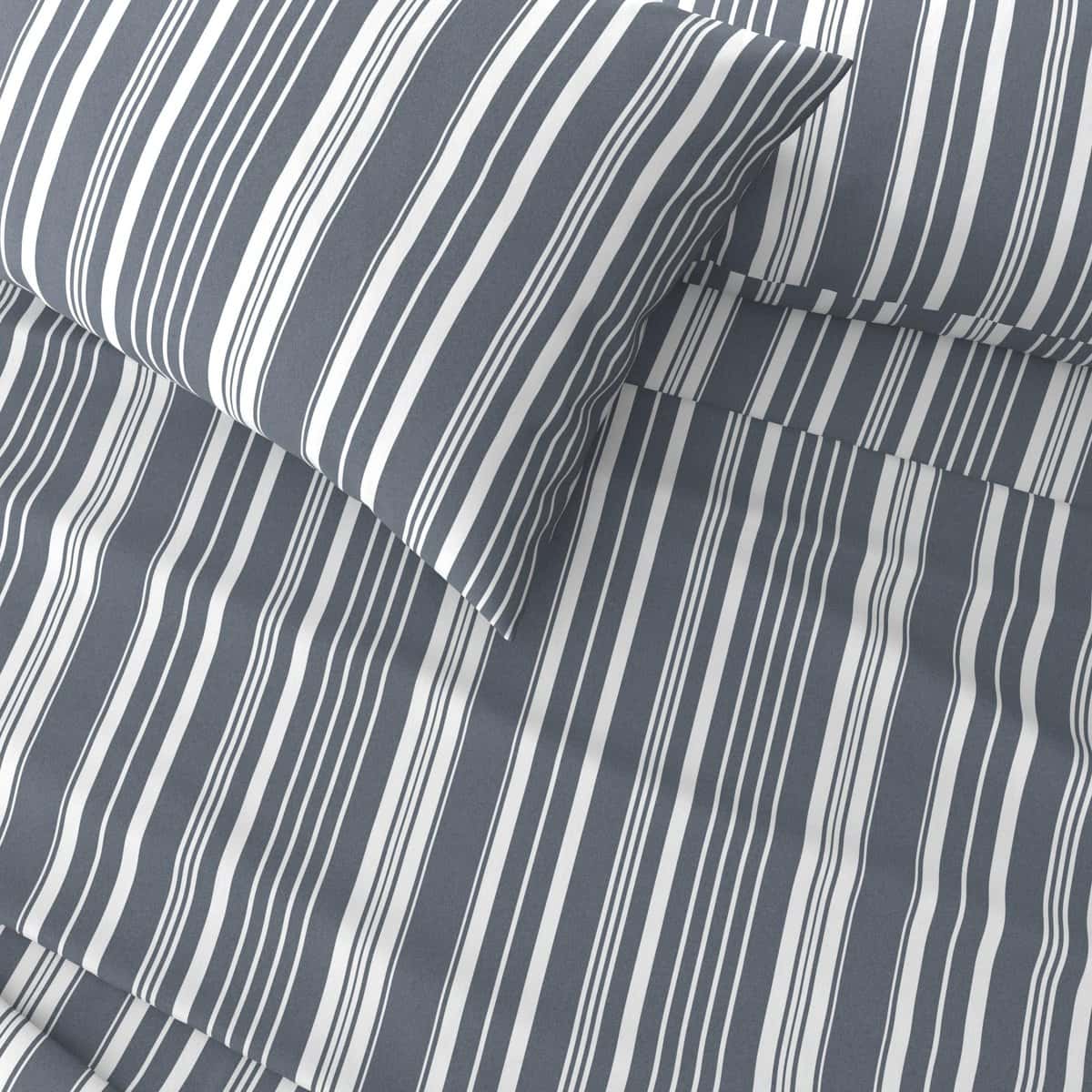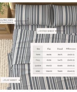 Estarás descansando con estilo y comodidad todas las noches con estas sábanas de microfibra. Desde el clásico y atemporal diseño de rayas hasta la ultra suave sensación de microfibra cepillada, estas sábanas te tendrán acurrucándote en una comodidad incomparable. Perfectas para todas las estaciones, estas sábanas son ligeras y elegantes durante todo el año. Gracias a la duradera microfibra, estas sábanas son fáciles de cuidar y se vuelven más suaves con cada lavado! Estas sábanas ecológicas se producen sin productos químicos dañinos y en condiciones socialmente responsables, lo que las convierte en una excelente opción tanto para ti como para el planeta.