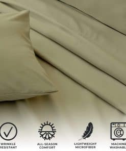 1. Amplia variedad de colores sólidos: elige entre una variedad de hermosos colores resistentes a la decoloración. Cada juego incluye 1 sábana ajustable, 1 sábana plana y 2 fundas de almohada (1 para tamaño Twin).