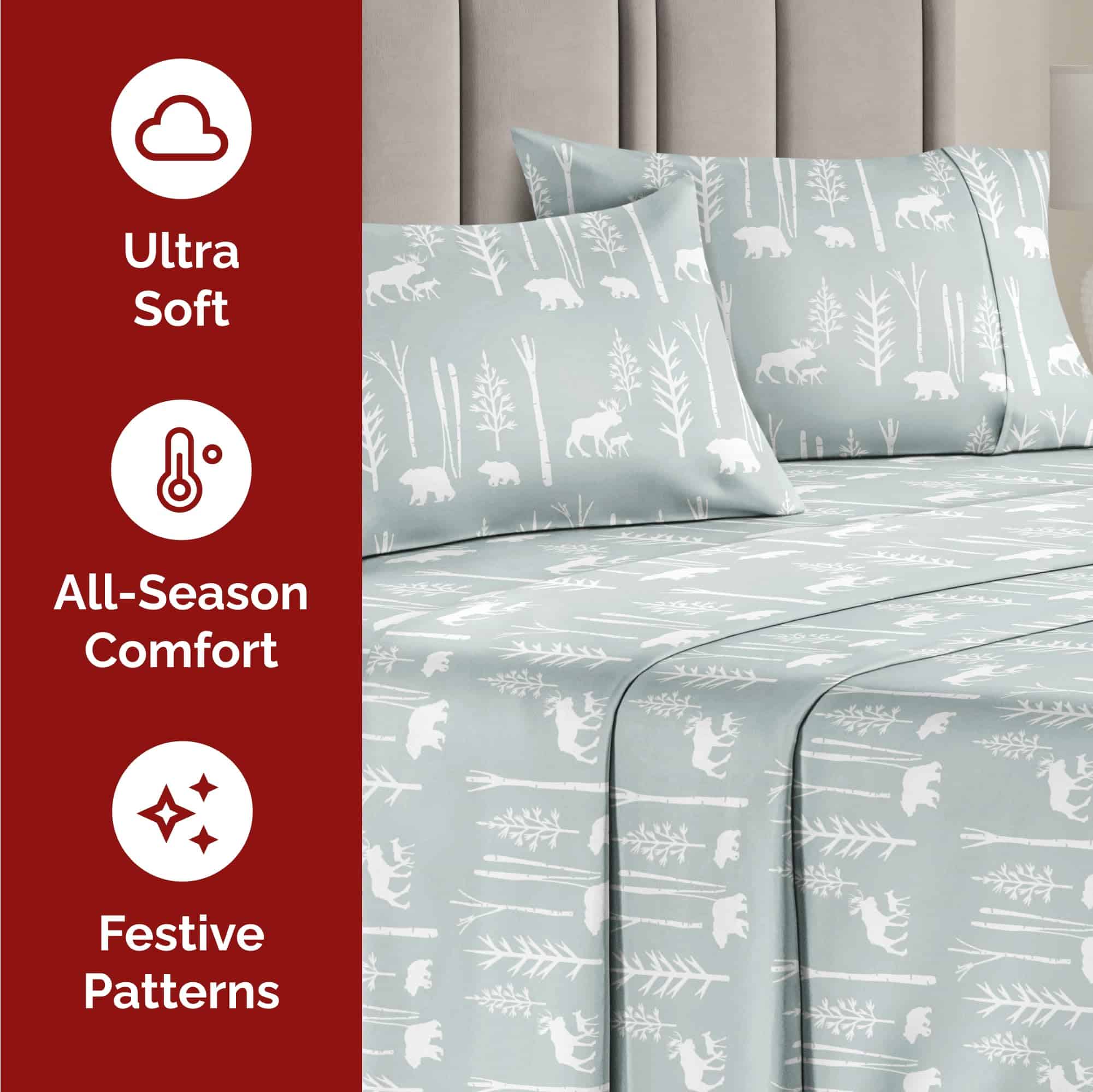 1. ¡Ten una temporada navideña alegre con nuestro juego de sábanas navideñas de 4 piezas! Incluye 2 fundas de almohada, 1 sábana ajustable y 1 sábana plana. Medidas: Sábana plana (108″ x 102″) Sábana ajustable (84″ x 72″) 2 fundas de almohada (40 x 20 ).
