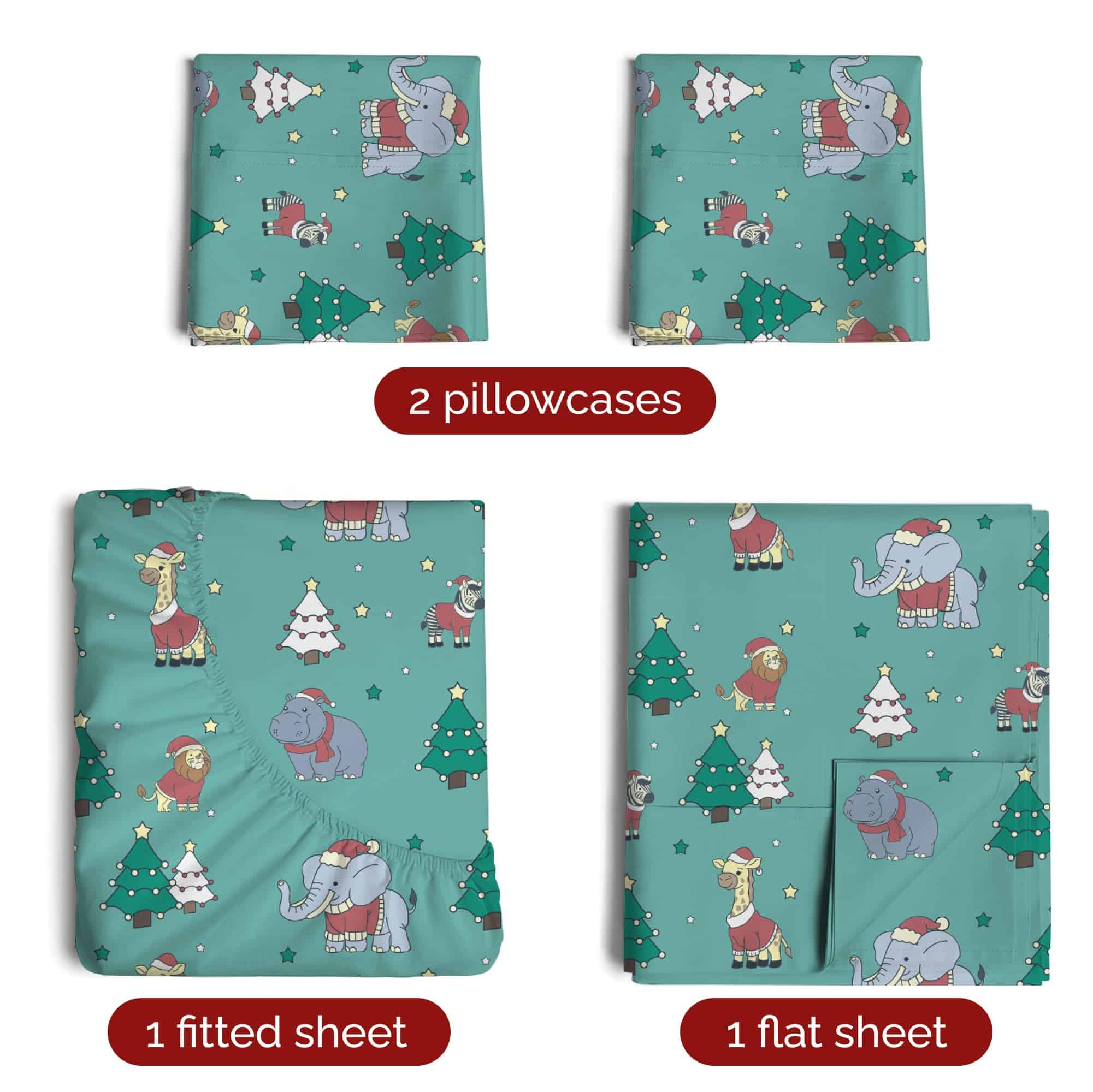 Juego de Sábanas de Navidad Completo con Animales de Nieve