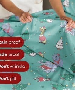 Juego de sábanas navideñas completo con animales de nieve – Juego de ropa de cama con patrón navideño – Bolsillos profundos – Ajuste cómodo – 4 piezas – Sin arrugas – Fresco y acogedor – Sábanas navideñas para mujeres, hombres, niños y adolescentes. Ten una temporada navideña alegre con nuestro juego de sábanas navideñas de 4 piezas que incluye 2 fundas de almohada, 1 sábana plana y 1 sábana ajustable. La sábana plana mide 96 x 81 pulgadas, la sábana ajustable mide 75 x 54 pulgadas y las 2 fundas de almohada miden 20 x 30 pulgadas. Con bolsillos profundos, estas sábanas de cama se ajustan a colchones de hasta aproximadamente 16 pulgadas de profundidad, garantizando un ajuste cómodo. Hechas de la más alta calidad de microfibra cepillada doble, estas sábanas son suaves, frescas y transpirables. Ideales para cualquier habitación de la casa, como el dormitorio, la habitación de invitados, la habitación de los niños, la caravana, la casa de vacaciones, etc. Estas sábanas son un regalo perfecto para hombres y mujeres, mamás y papás, en ocasiones especiales como el Día de San Valentín, el Día de la Madre, el Día del Padre y, por supuesto, ¡Navidad! Disfruta de la suavidad y la comodidad de estas sábanas a un precio asequible que no encontrarás en otras sábanas caras.