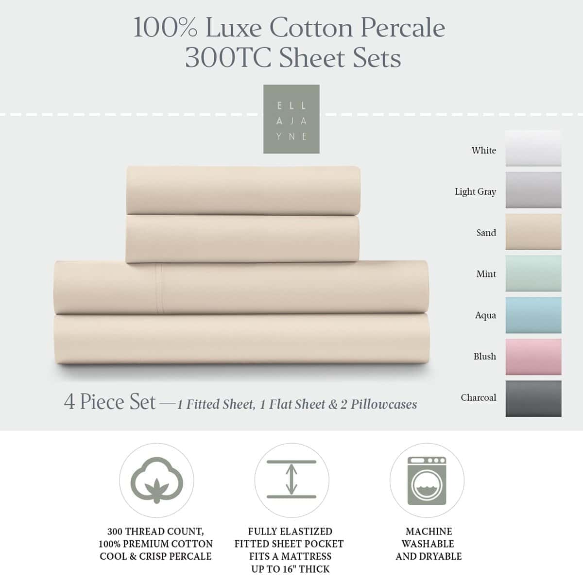 Juego de sábanas de percal 100% algodón de lujo Ella Jayne