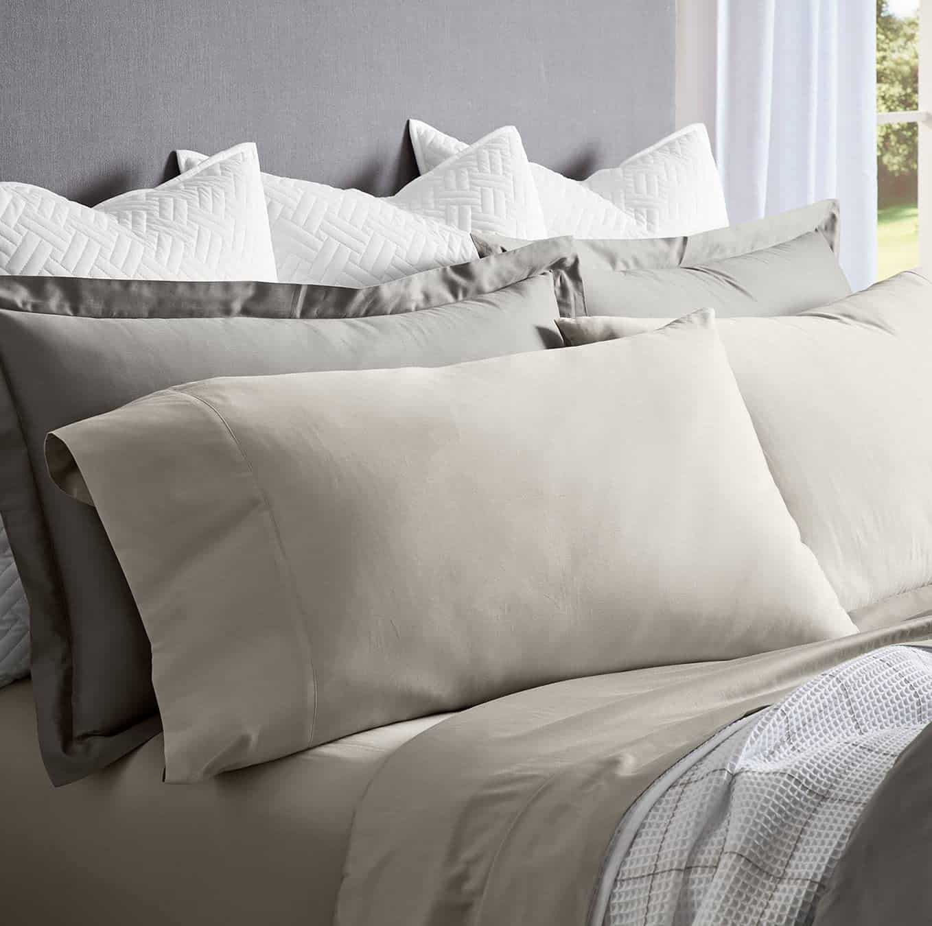 El tejido de percal de alta calidad ofrece una sensación refinada y transpirable, lo que ayuda a mantenerte fresco y cómodo durante toda la noche. Con un acabado estructurado sofisticado que recuerda a una camisa de botones de alta gama, estas sábanas no solo son funcionales, sino que también agregan un toque de elegancia a tu dormitorio.